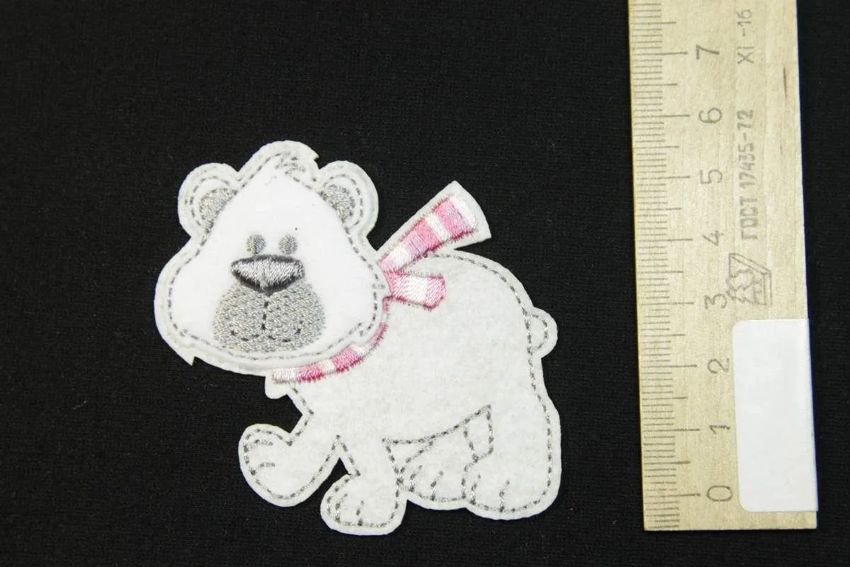 Термоаппликация текстильная "БЕЛЫЙ МИШКА" 68*60 мм
