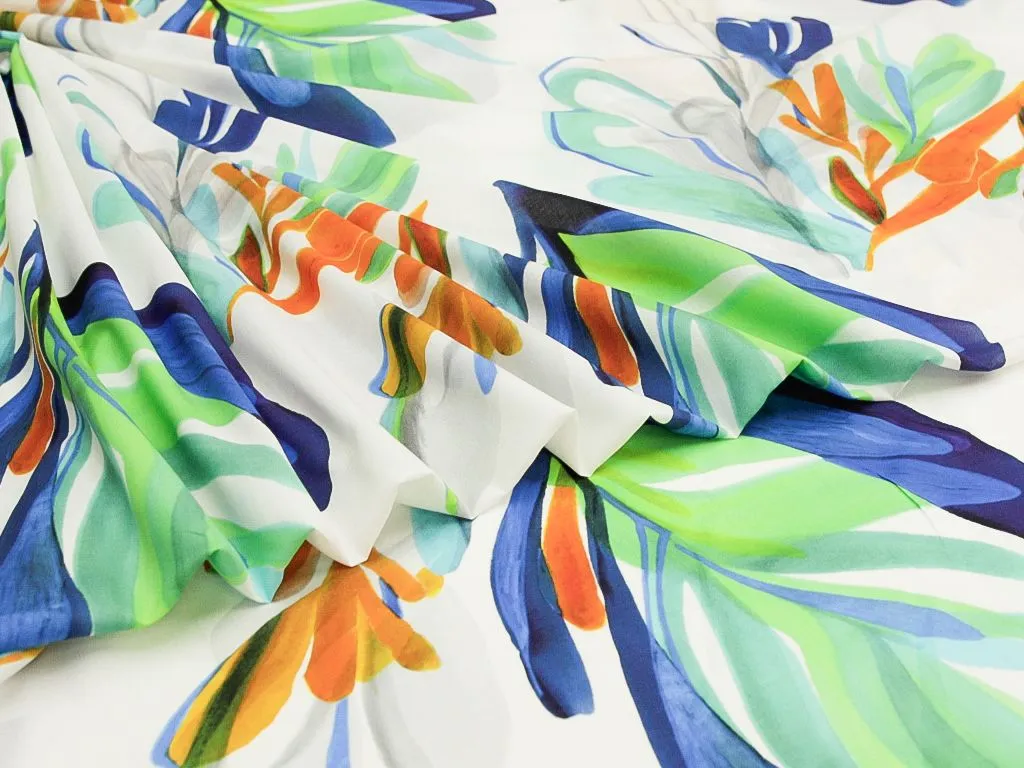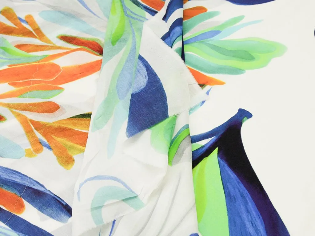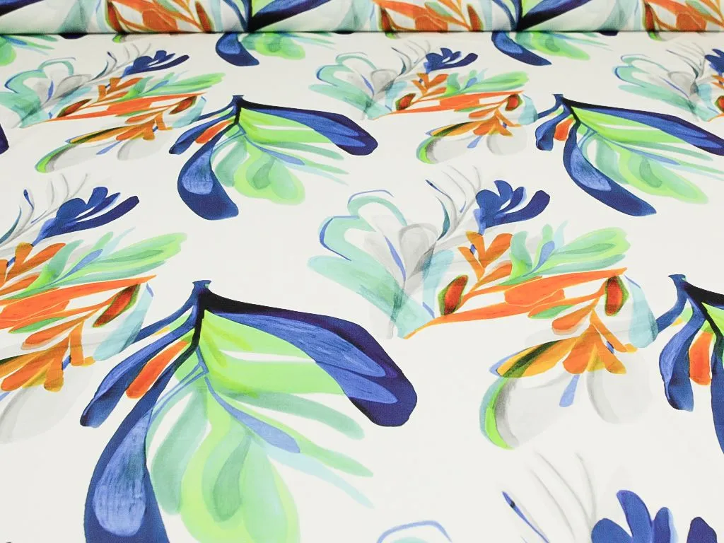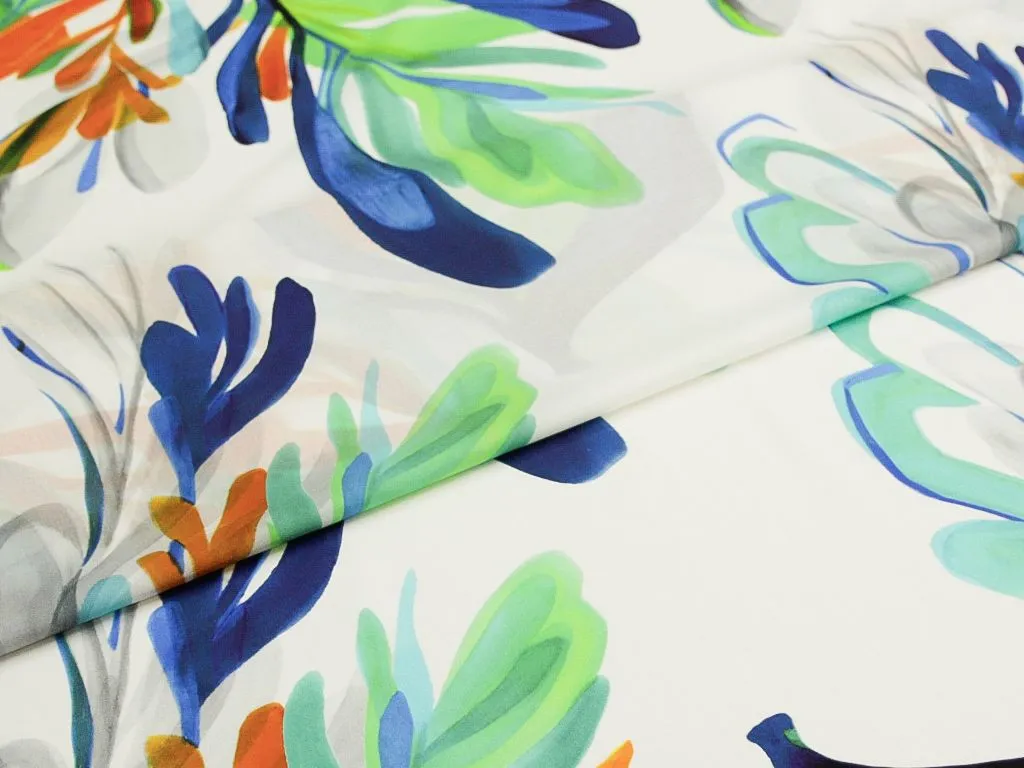 Батист с крупным рисунком "Листья", в сине-зеленых цветах