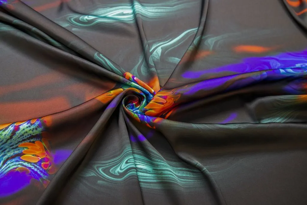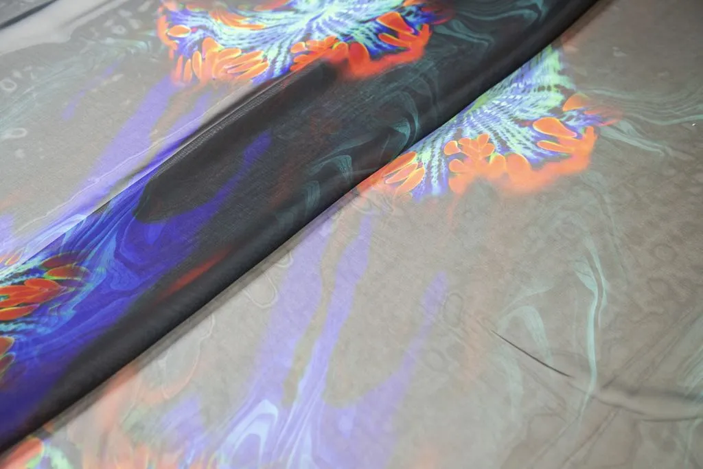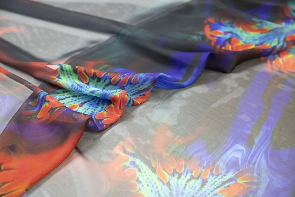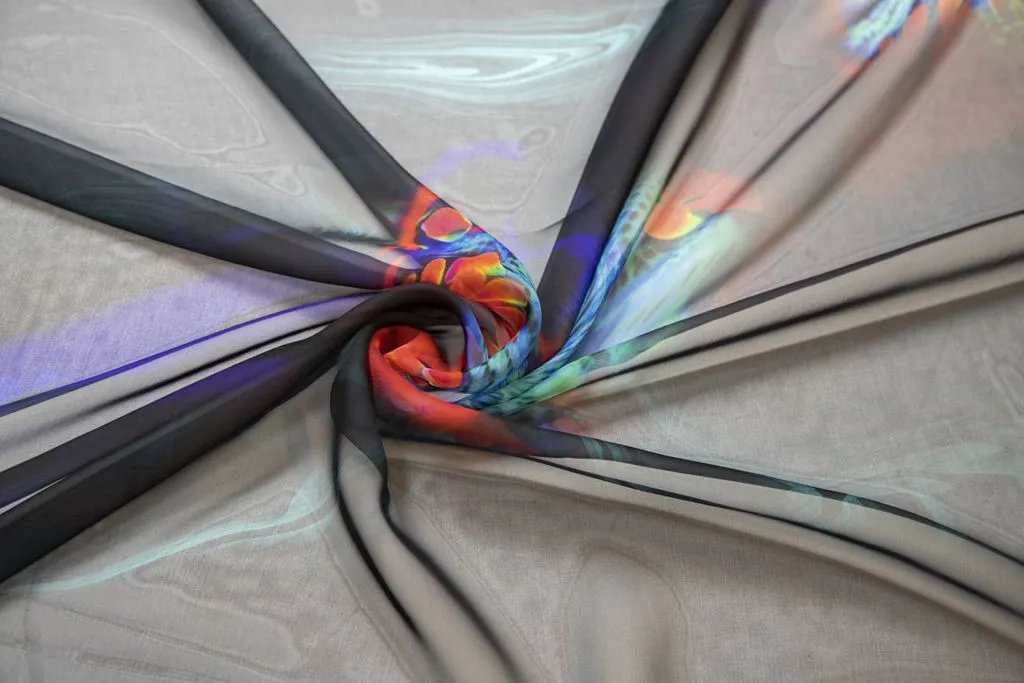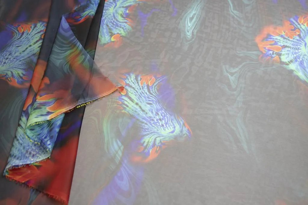 Шифон блузочно-плательный с экзотическим принтом, мультиклор
