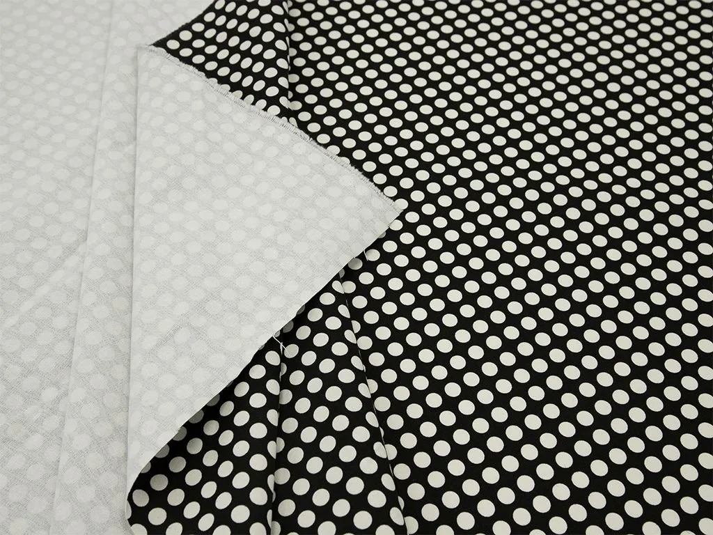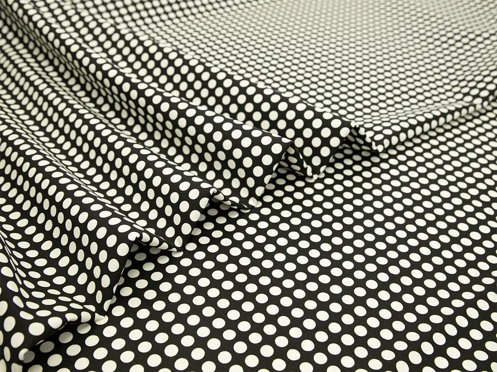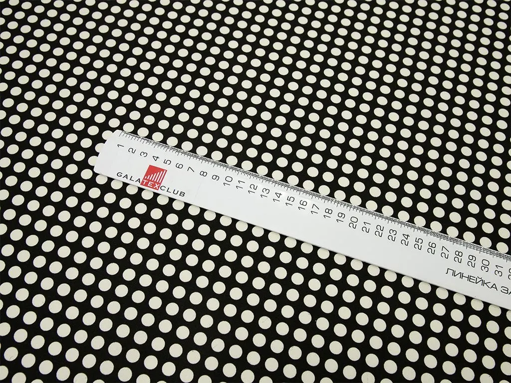 Хлопок костюмно-плательный в горошек, цвет кремово-черный