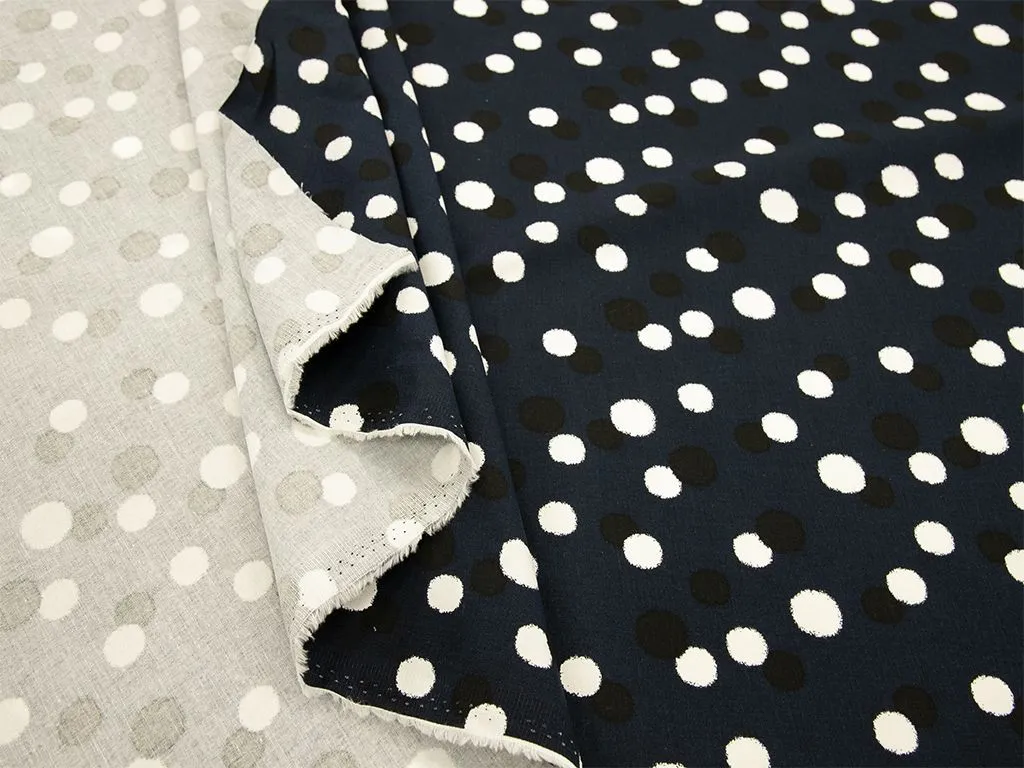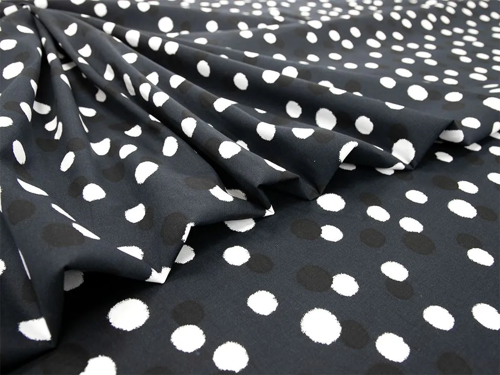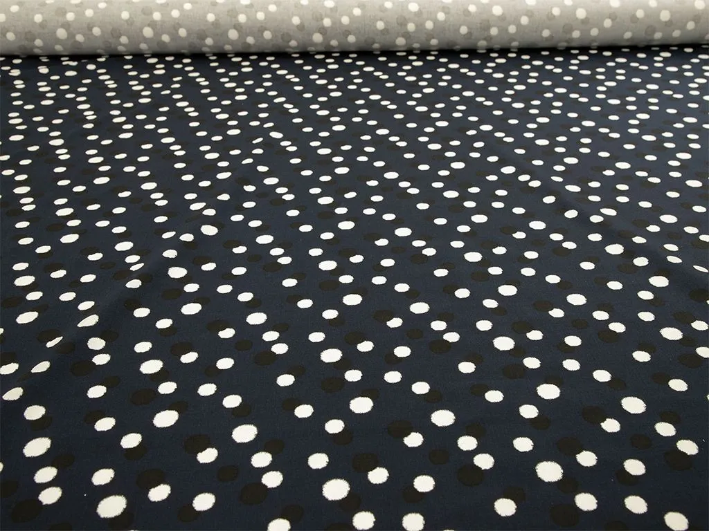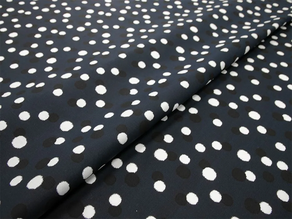Хлопок рубашечно-плательный с рисунком "черно-белый горох", фон темно-синий