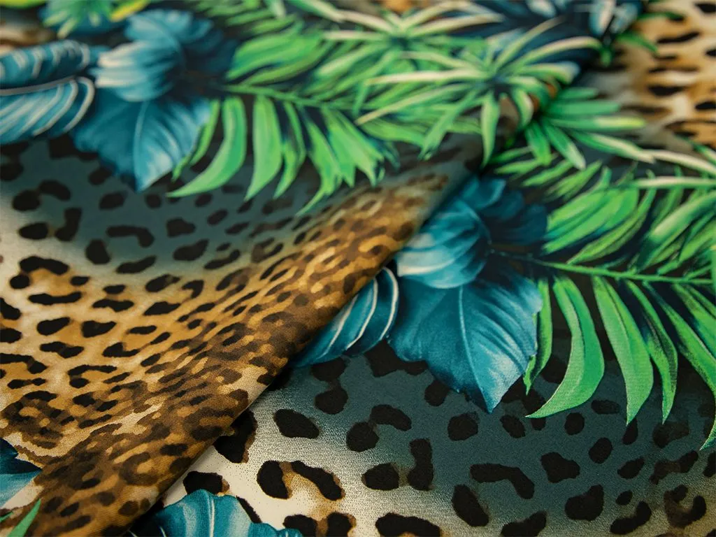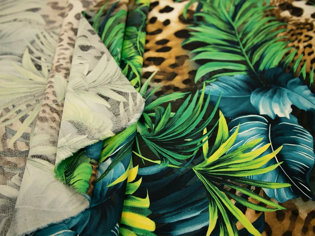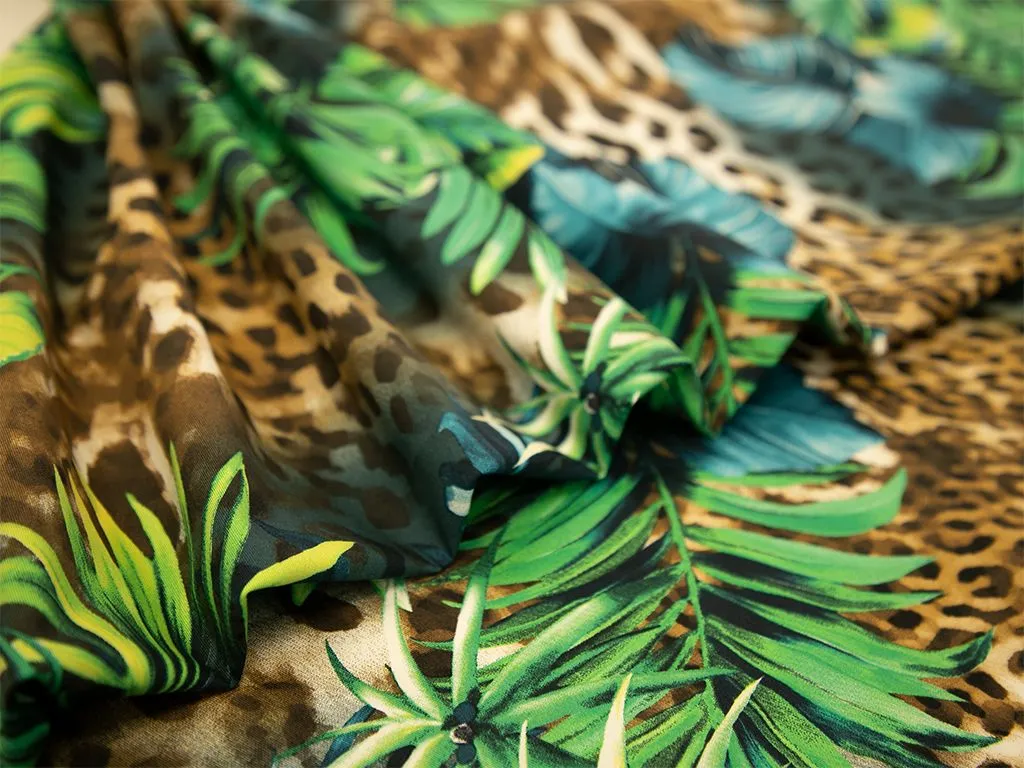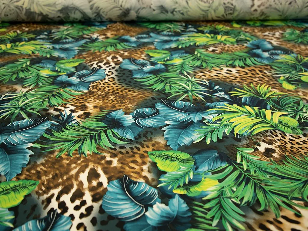 Хлопок рубашечно-плательный с рисунком "Джунгли", зелено-коричневый цвет