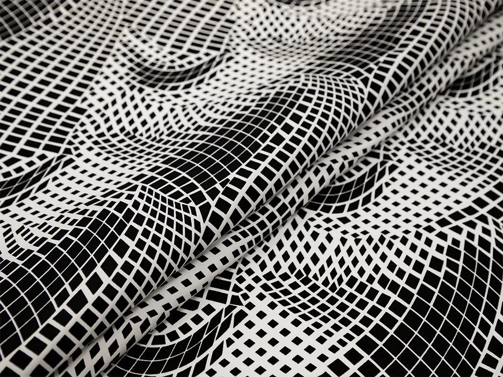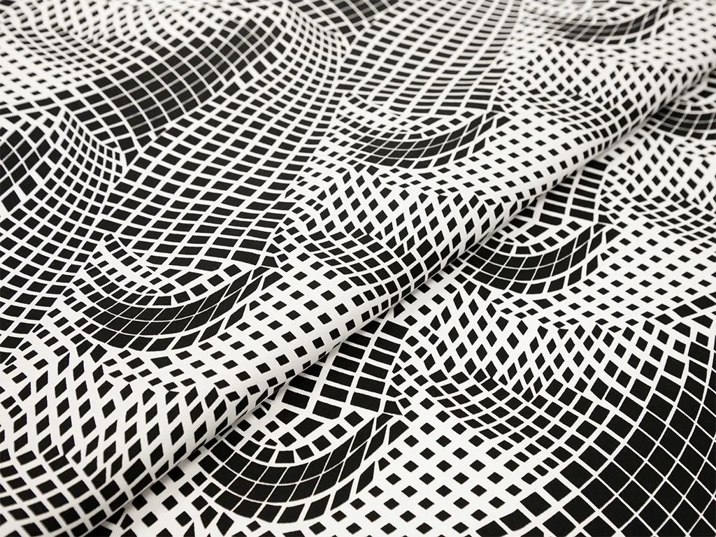 Хлопок рубашечно-плательный с рисунком "Геометрия", цвет черно-белый