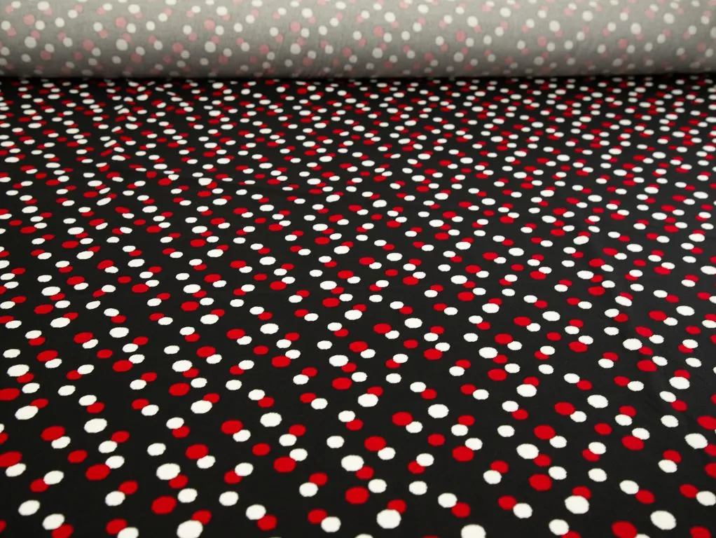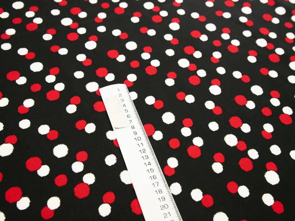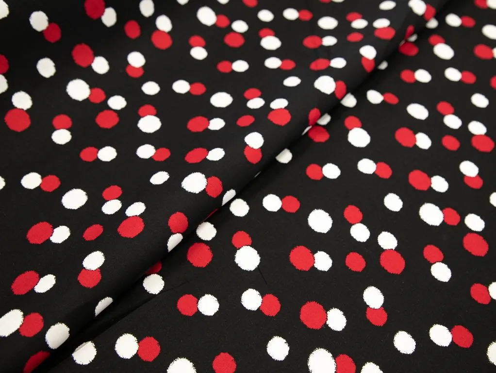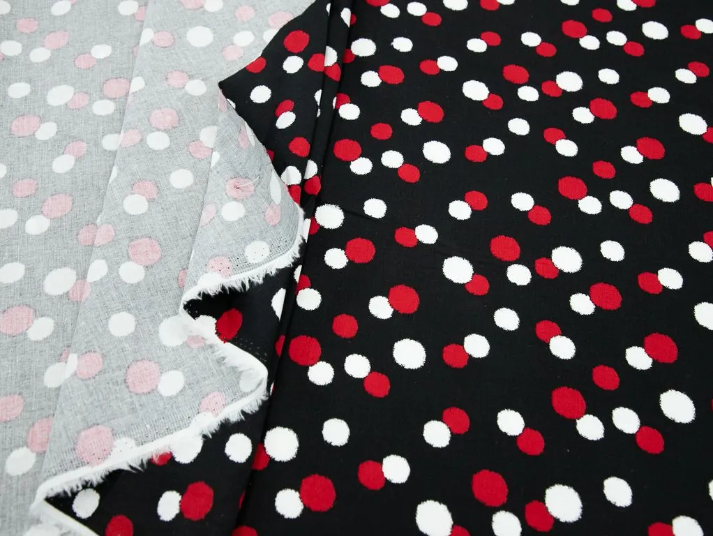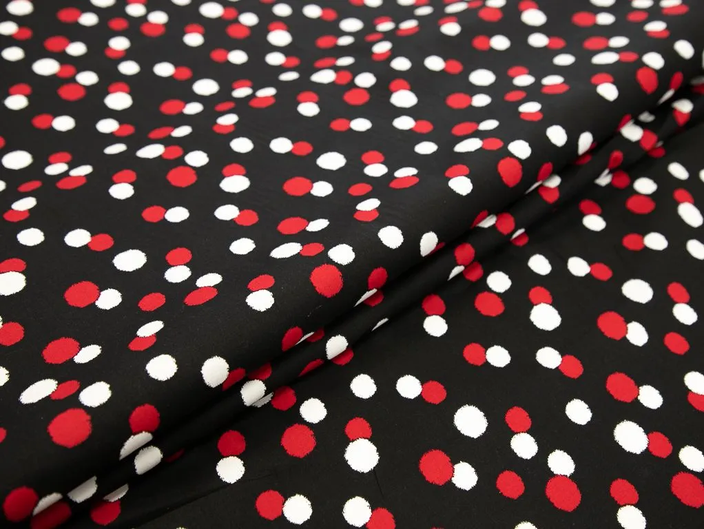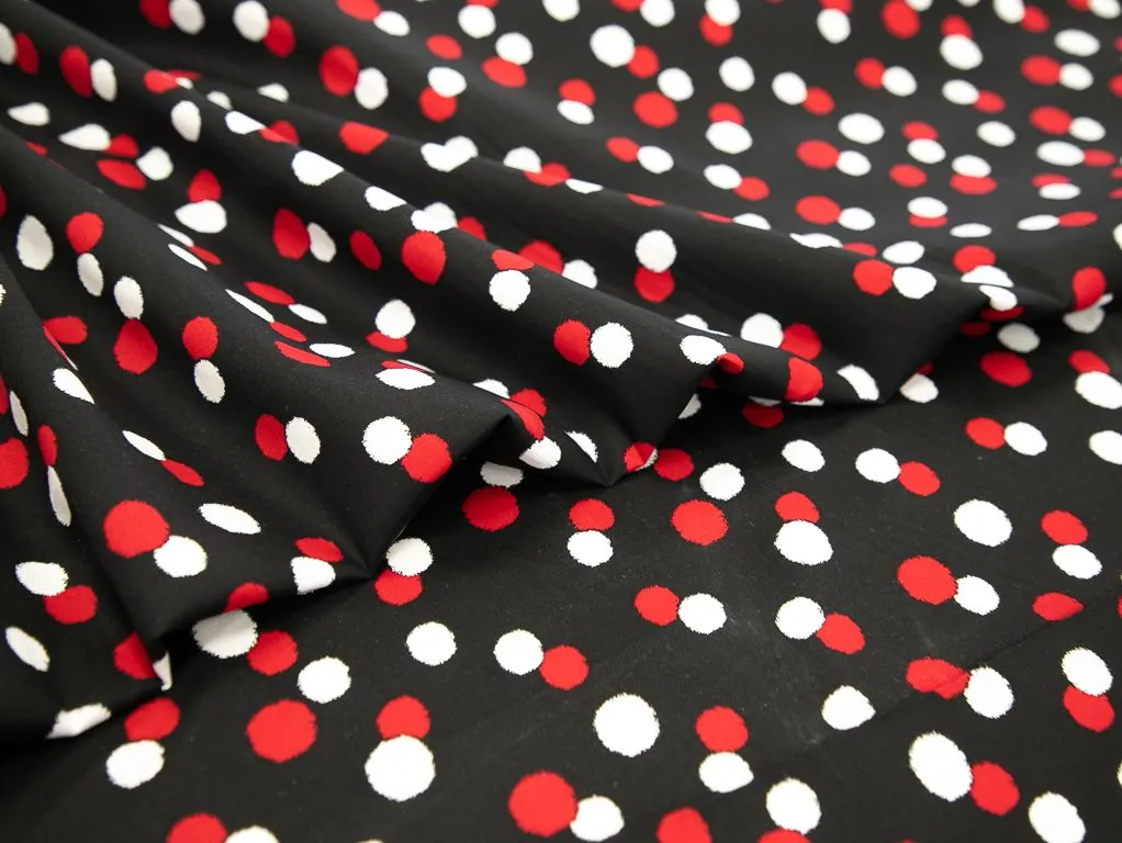 Хлопок рубашечно-плательный с рисунком "Красно-белый горох", фон черный