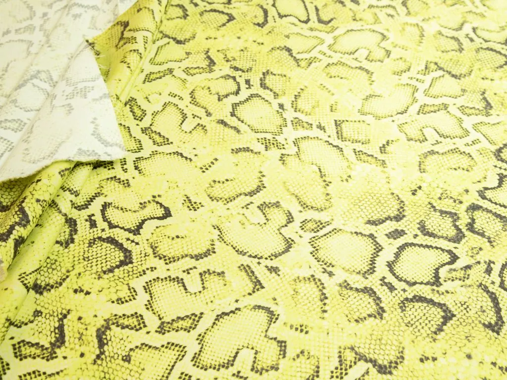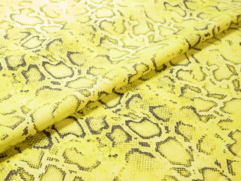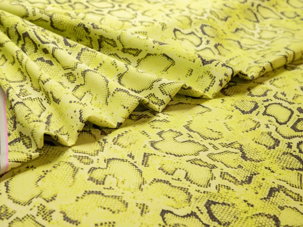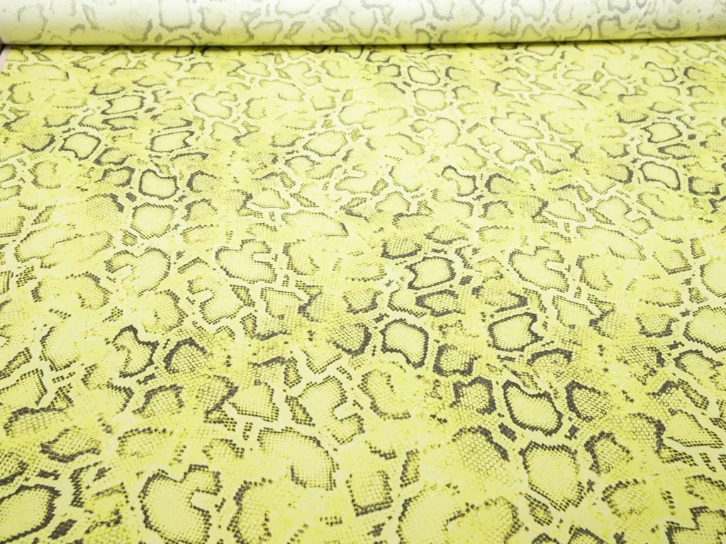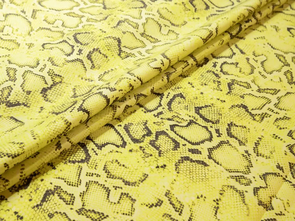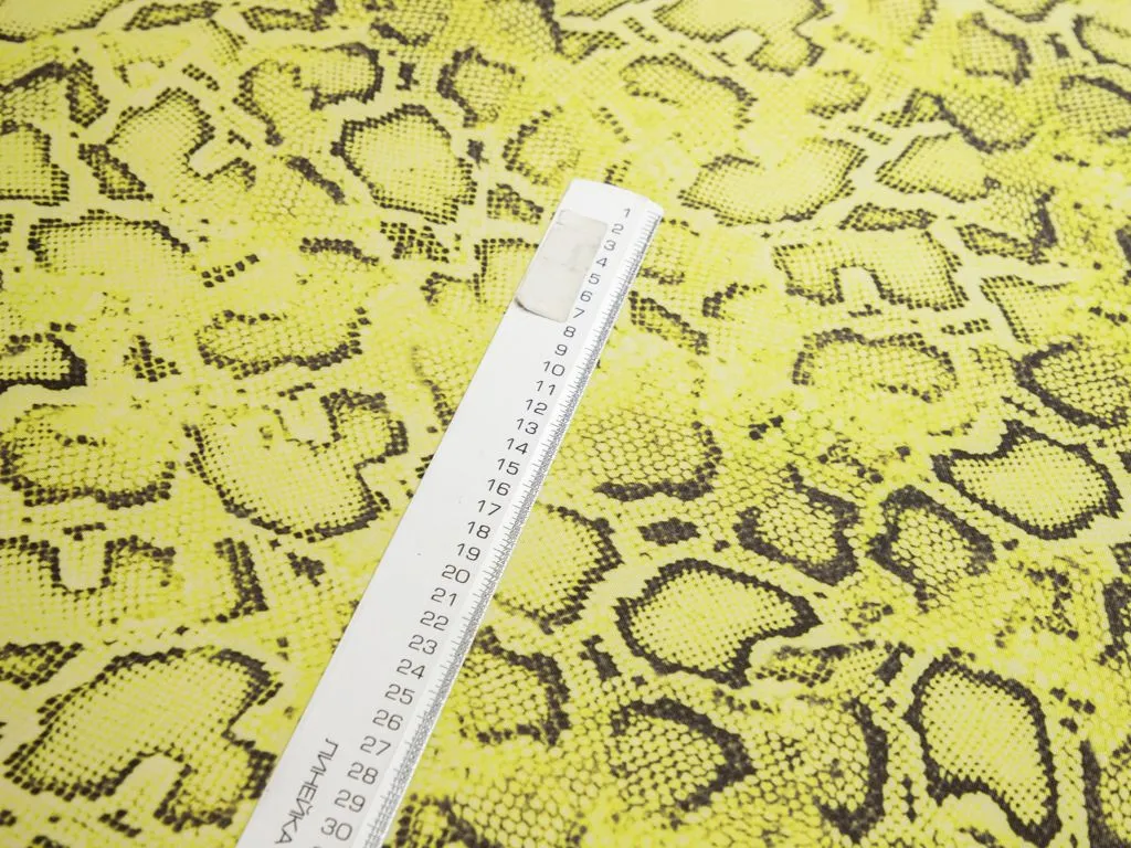 Хлопок рубашечно-плательный с рисунком "Рептилия" с лампасом по одному краю, цвет желто-зеленый