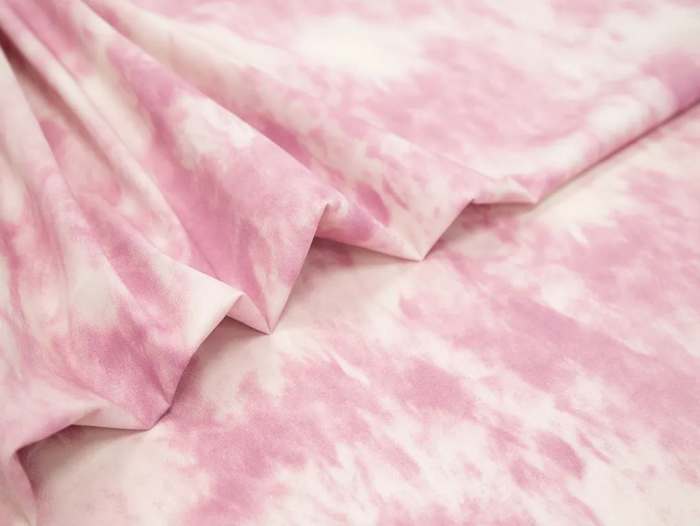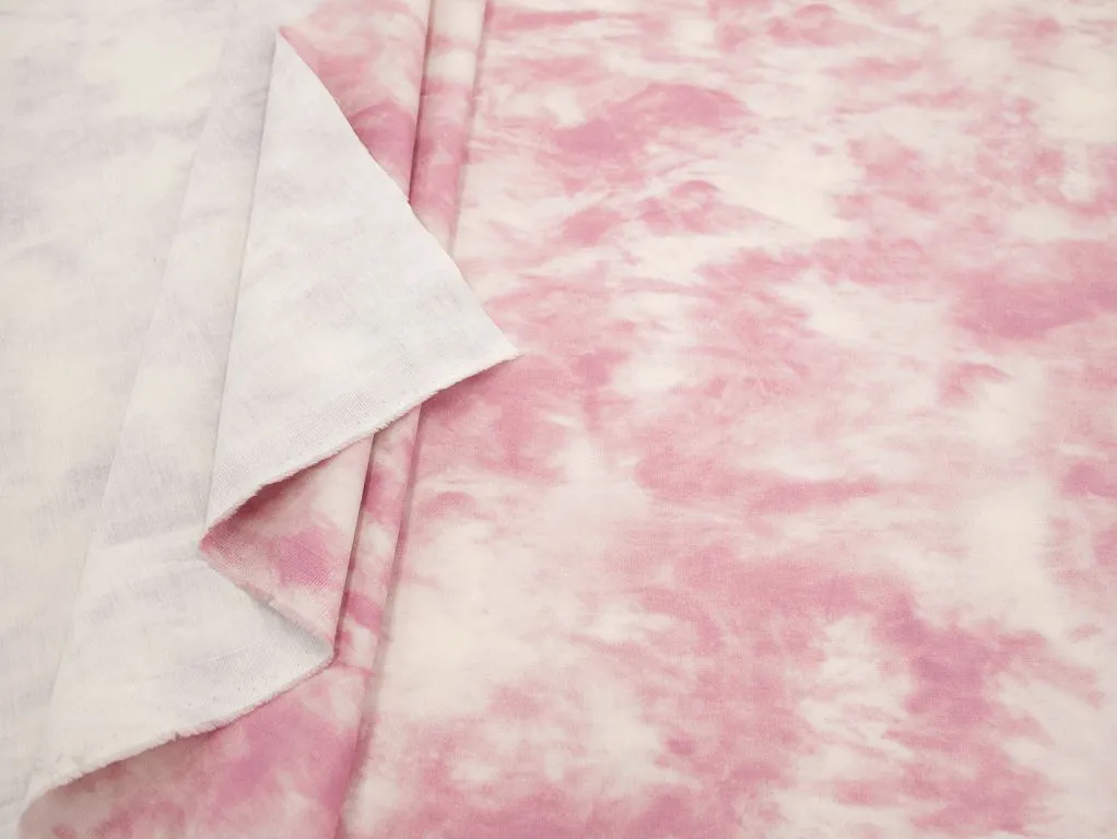 Хлопок рубашечно-плательный с рисунком тай-дай, цвет розовый