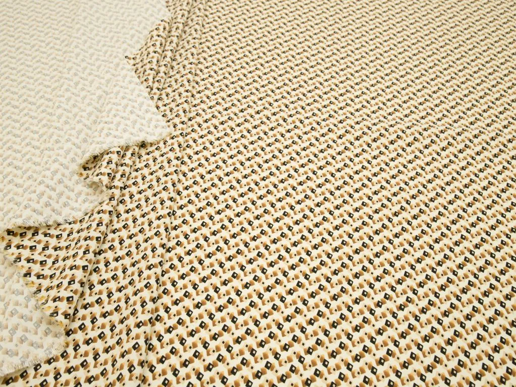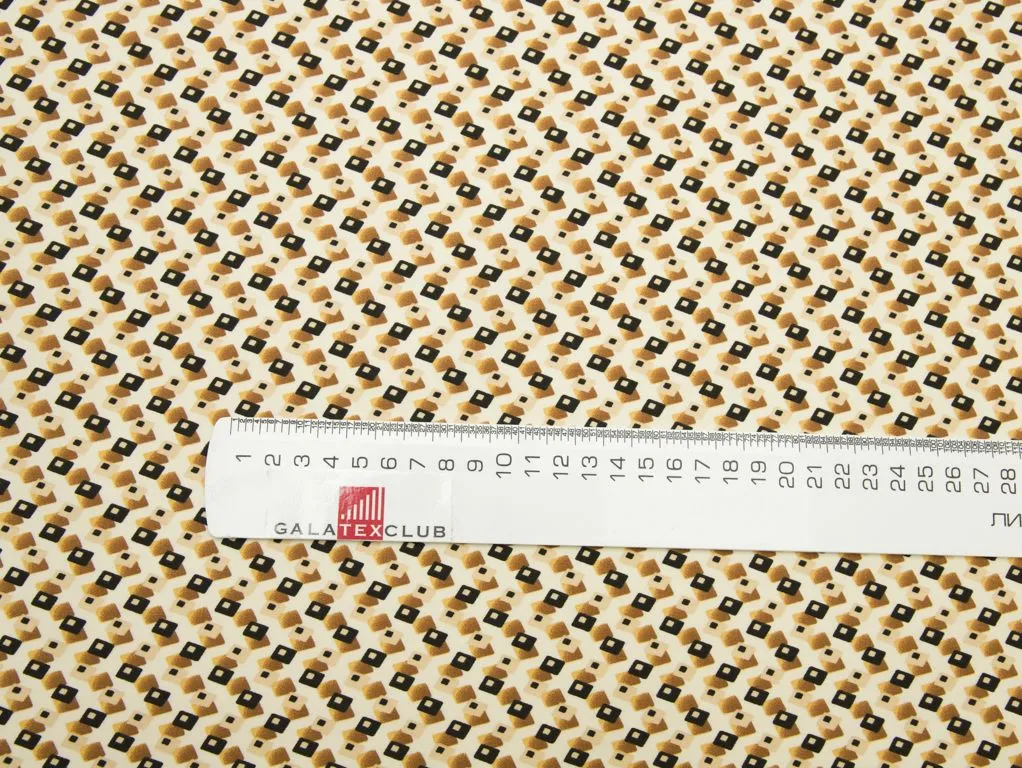 Костюмно-плательный хлопок с геометрическим принтом на молочном фоне