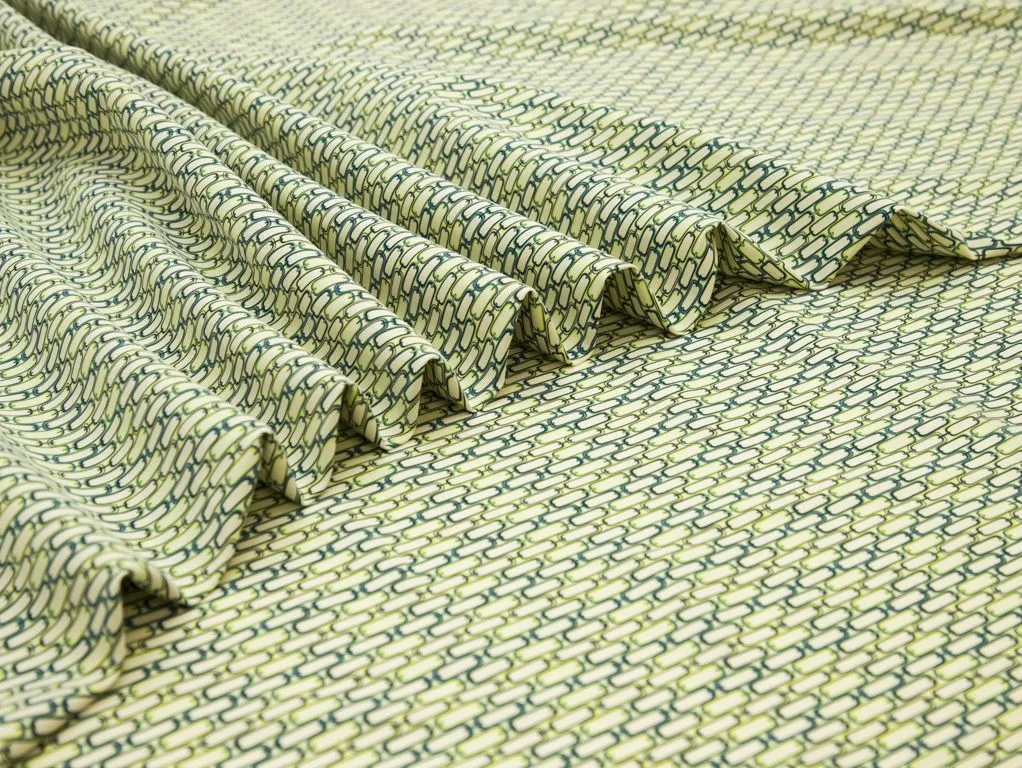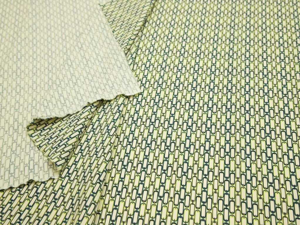 Рубашечно-плательный хлопок с геометрическим принтом на кремовом фоне