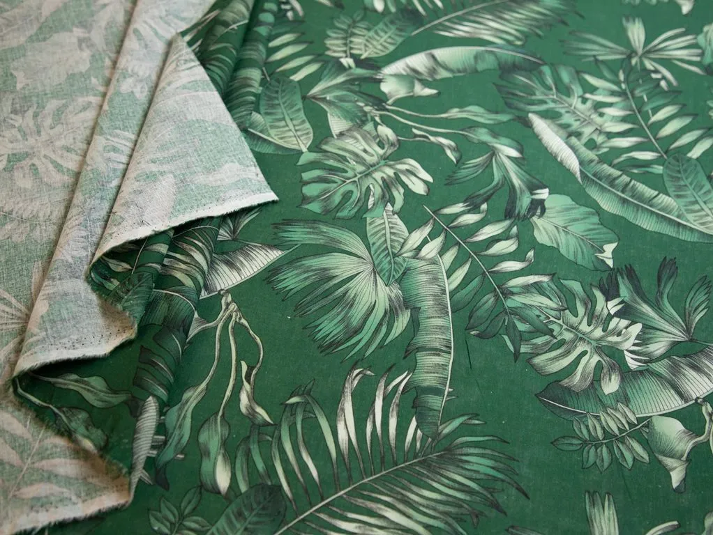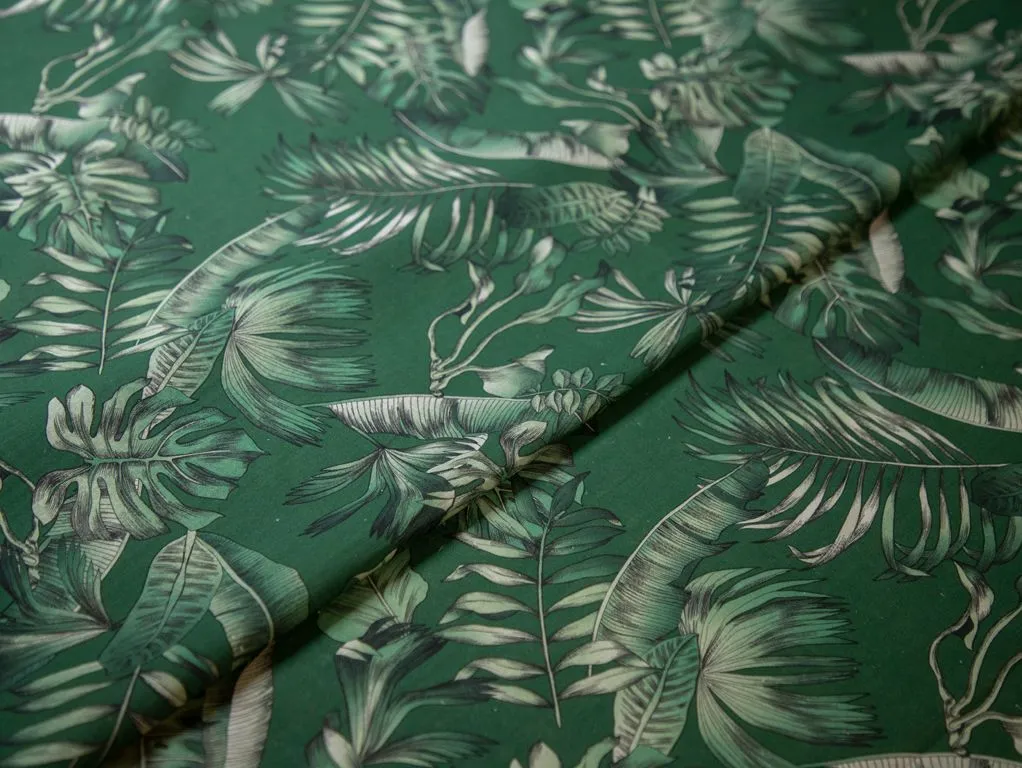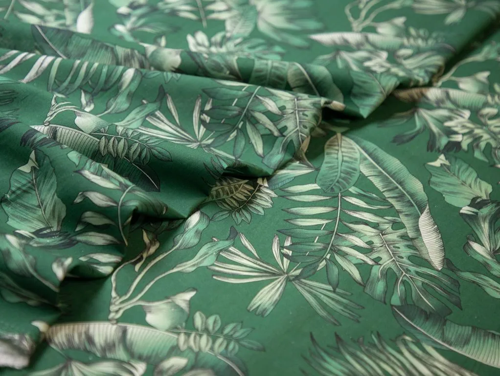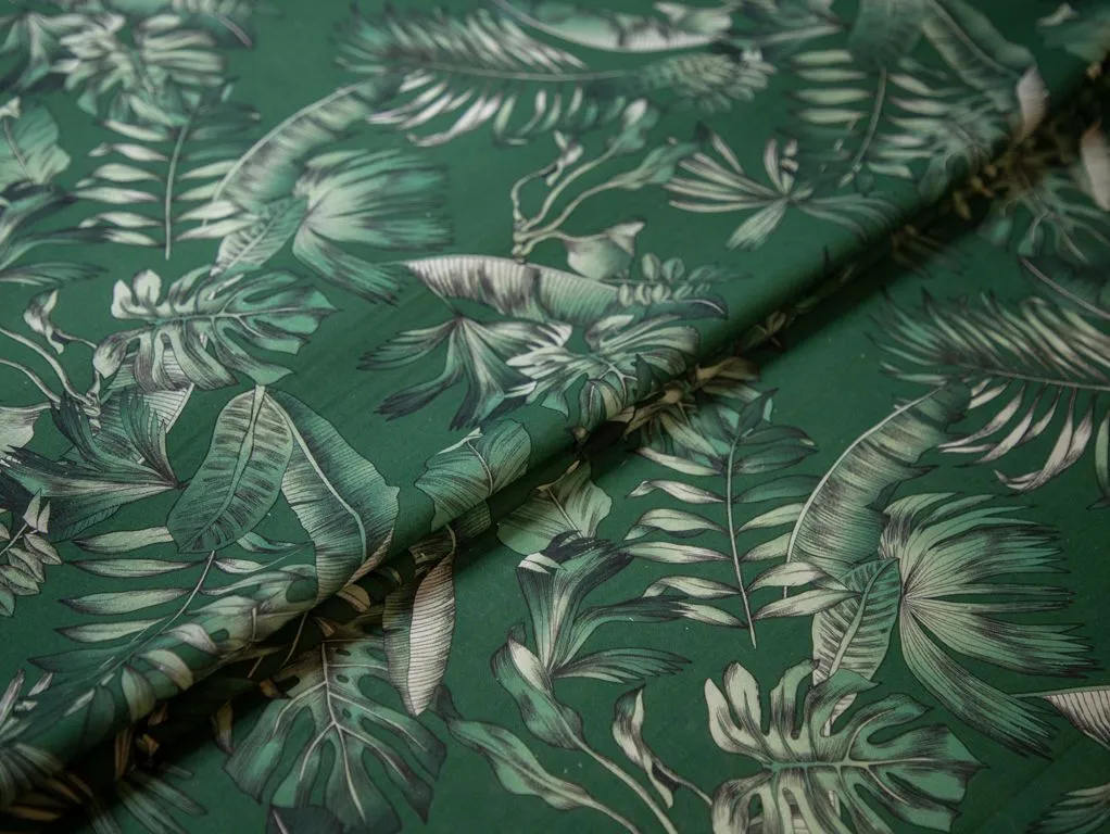 Рубашечно-плательный хлопок с растительным рисунком, в зеленых цветах