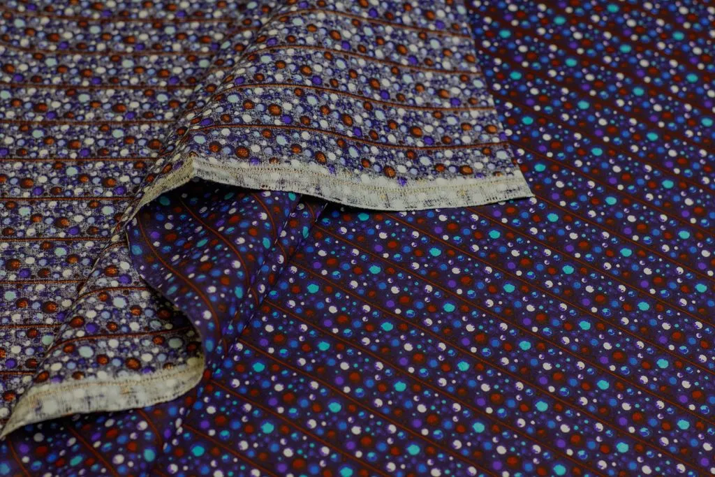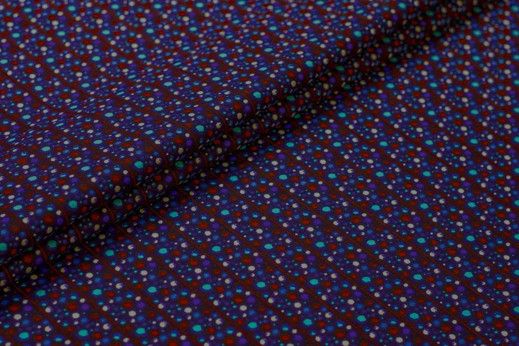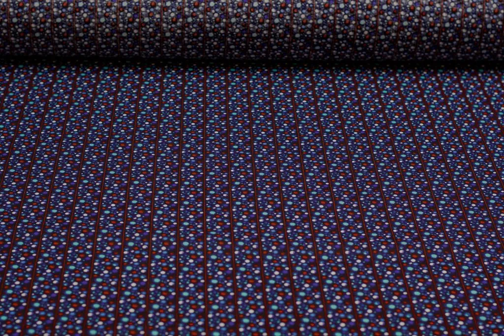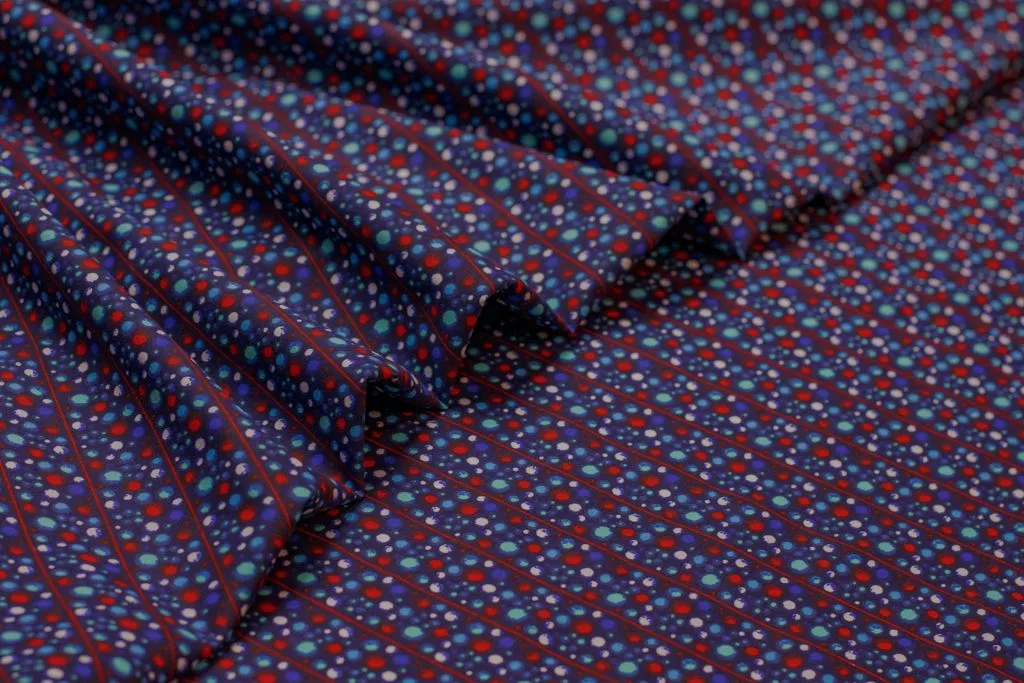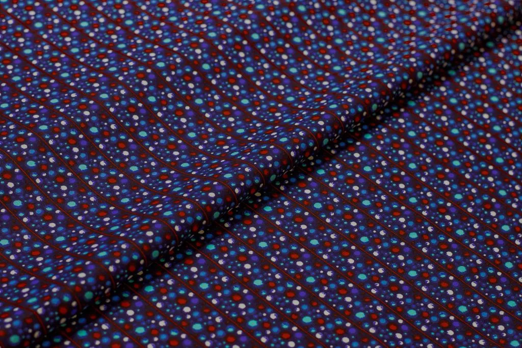 Рубашечно-плательный хлопок с рисунком "Полосы шариков" на синем фоне