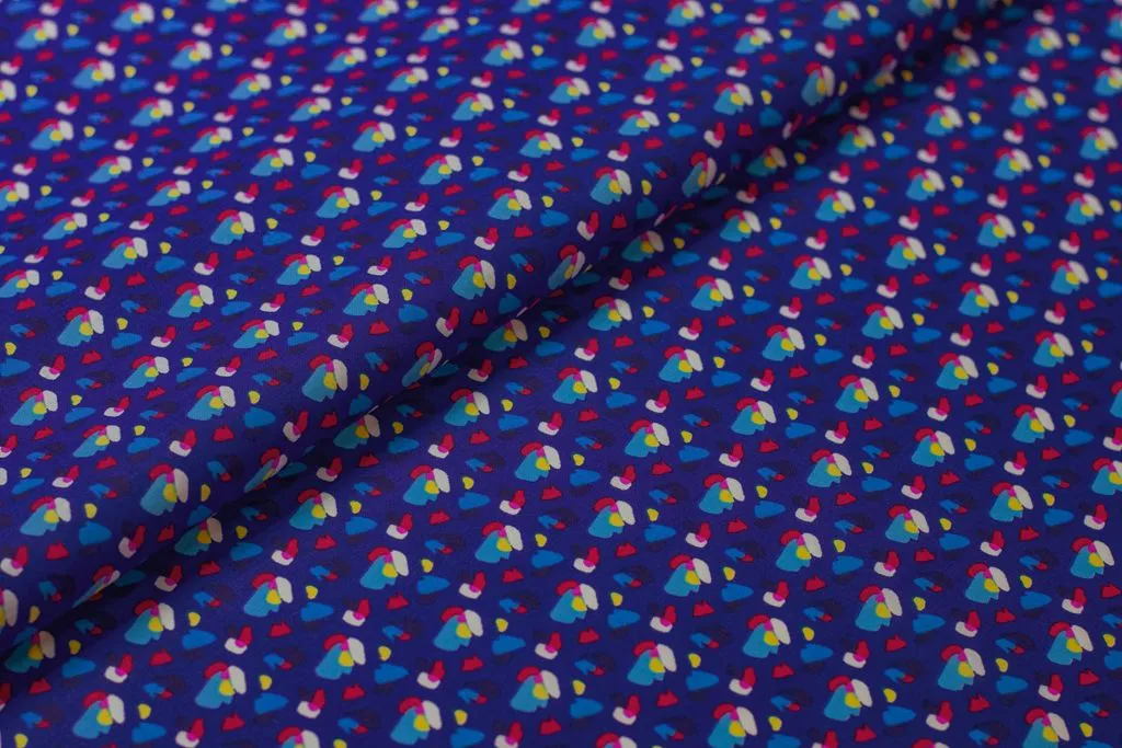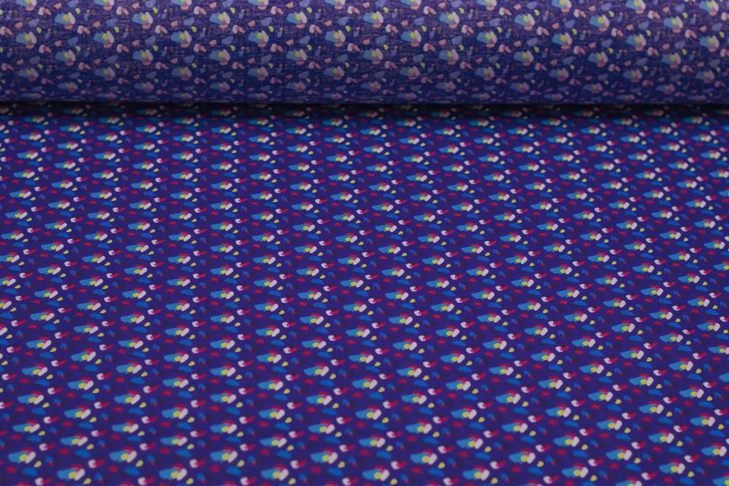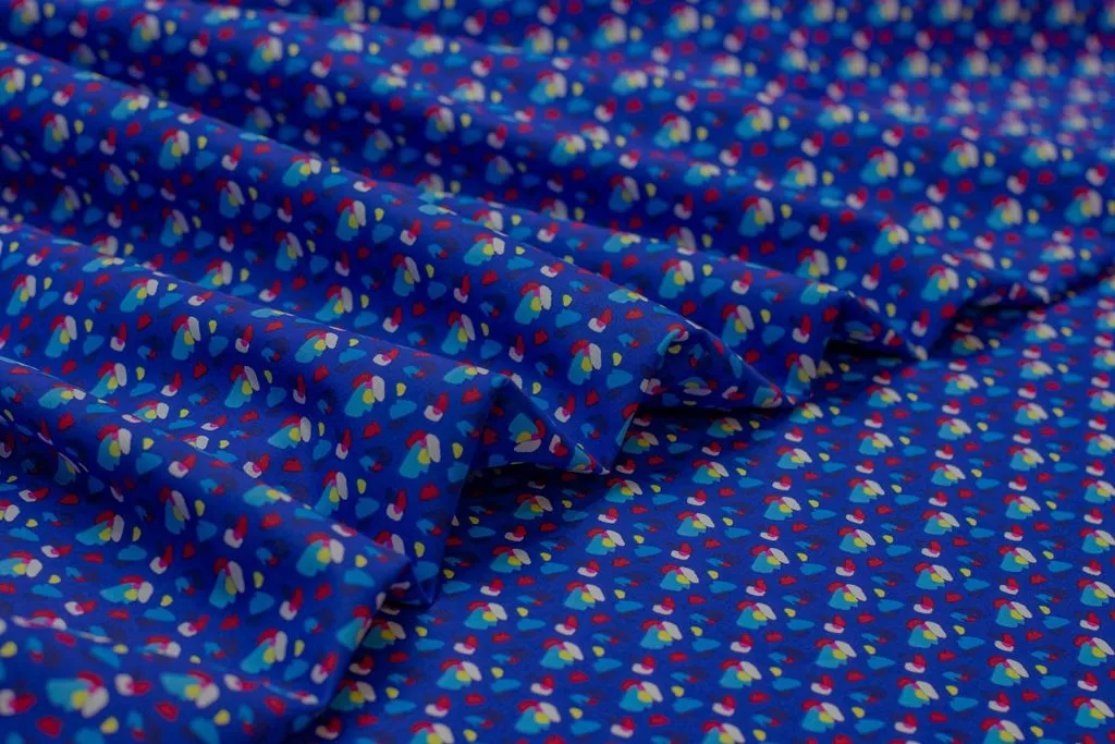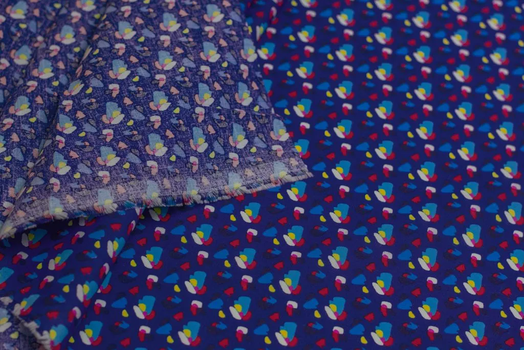 Рубашечно-плательный хлопок с рисунком "пятнышки" на синем фоне