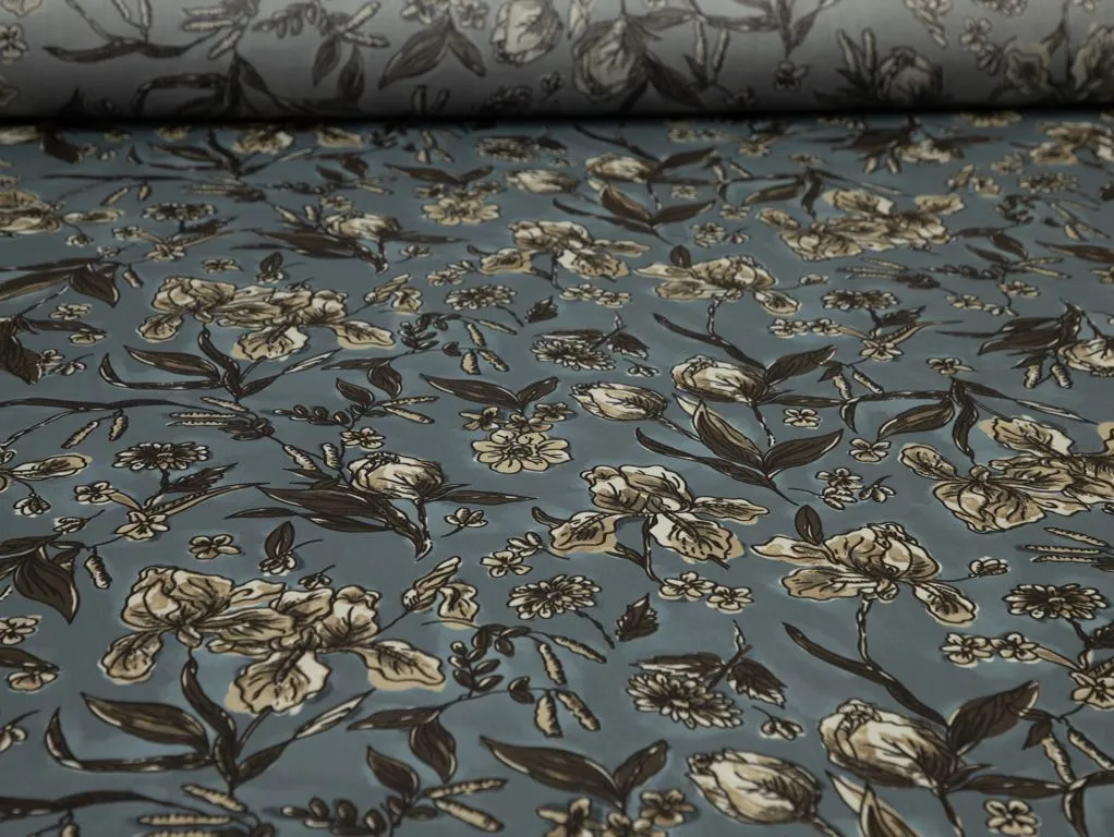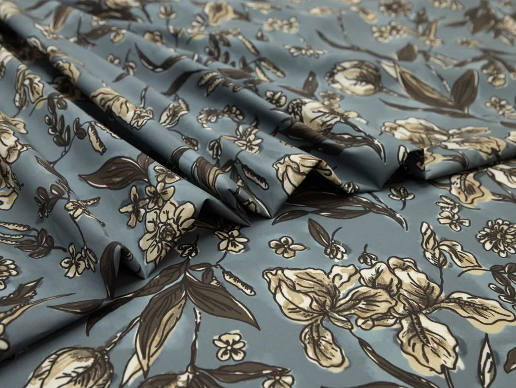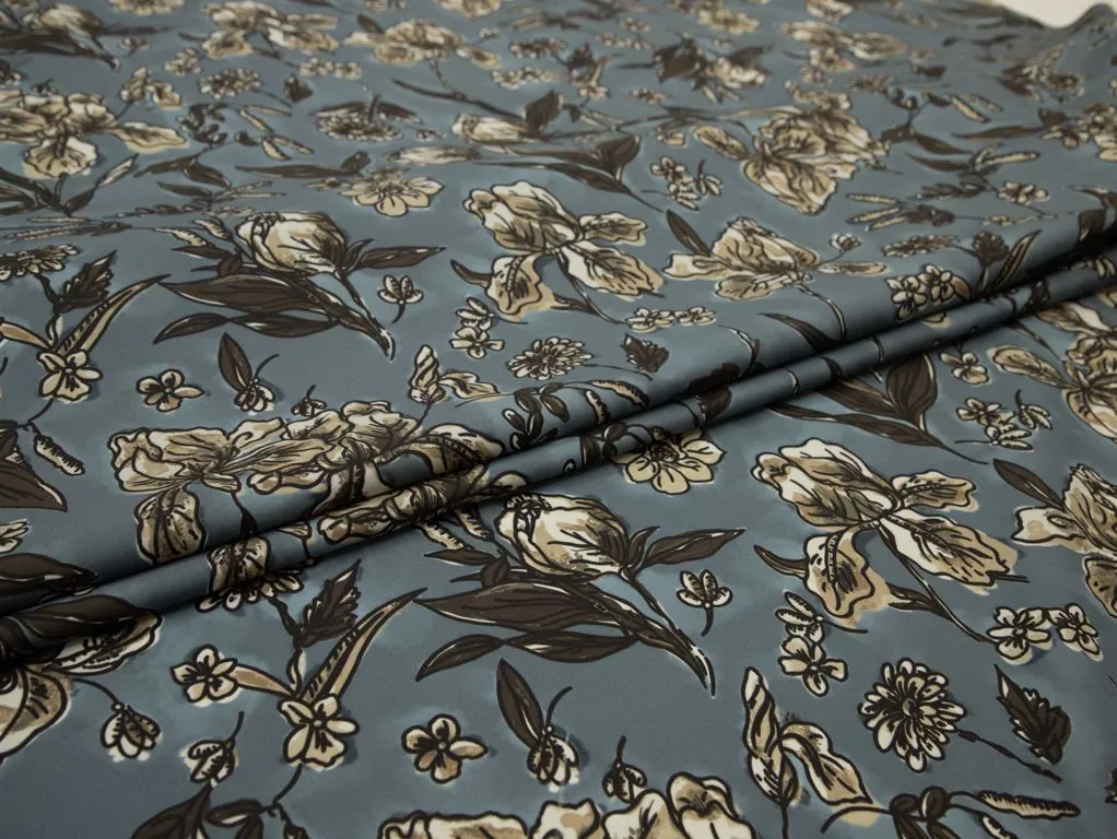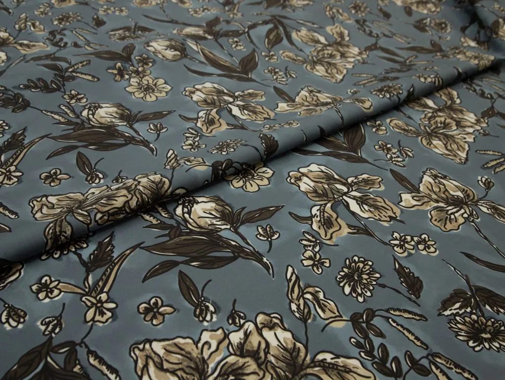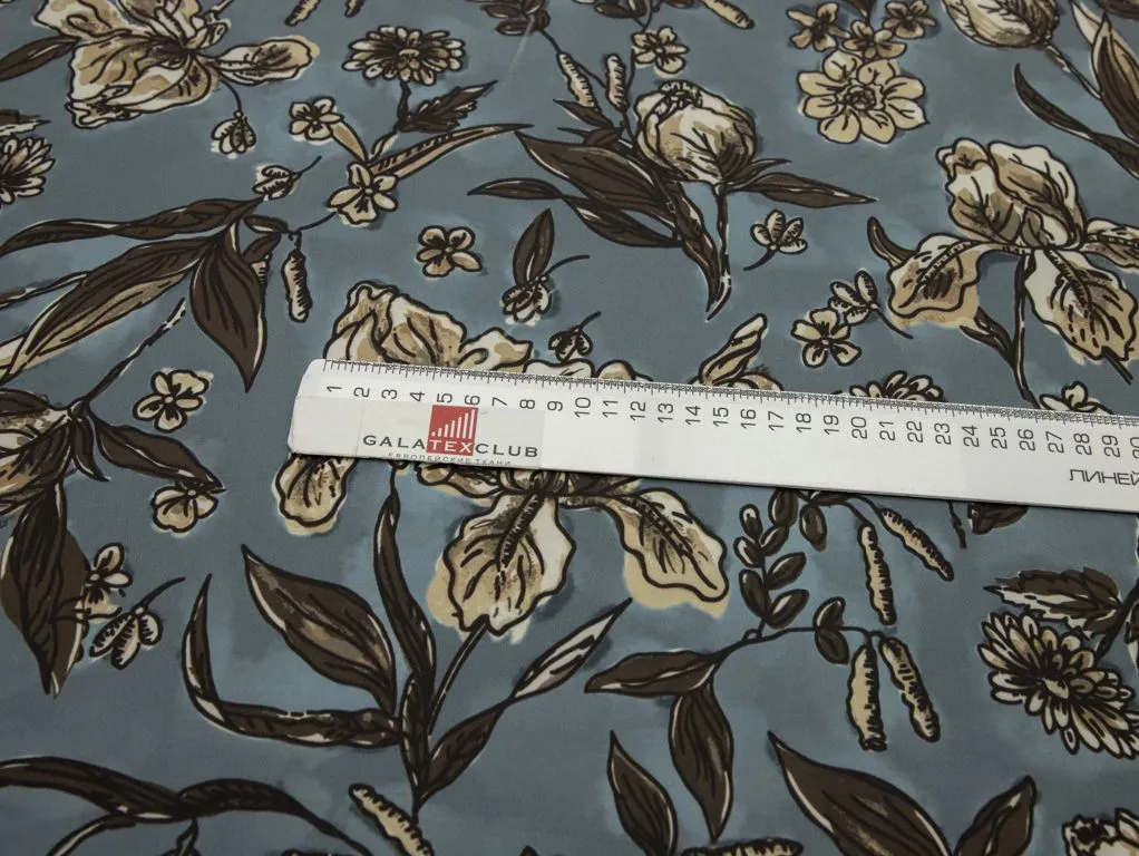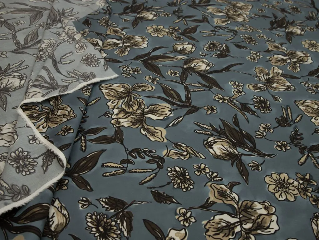 Рубашечно-плательный хлопок с рисунком "Садовые цветы", цвет сине-коричневый