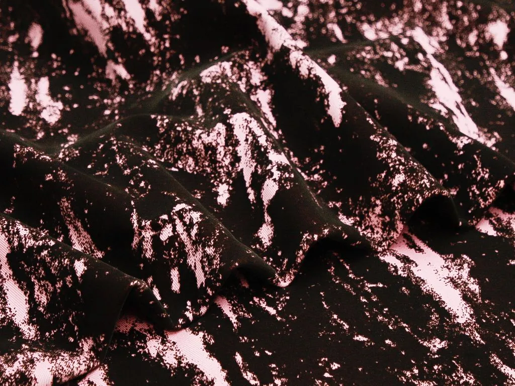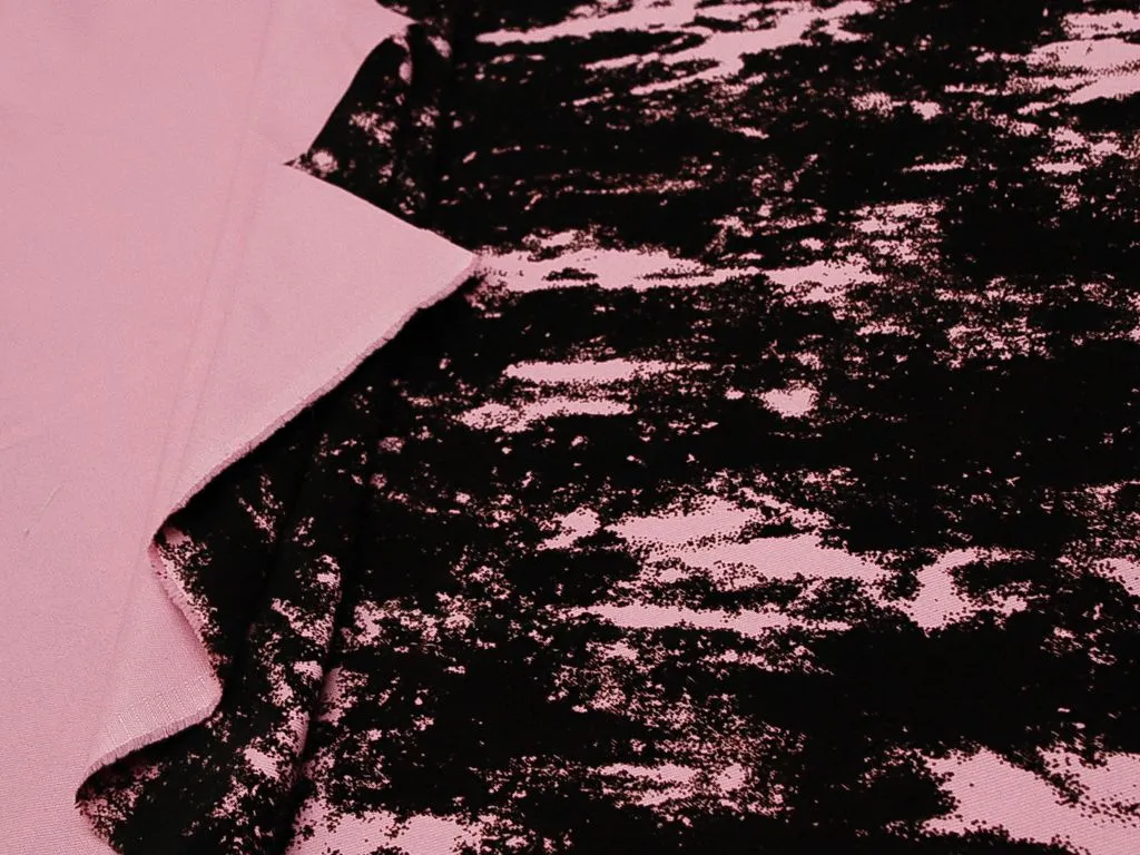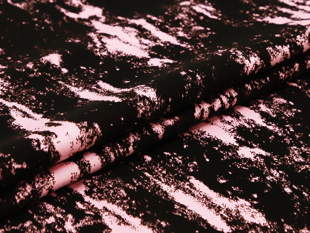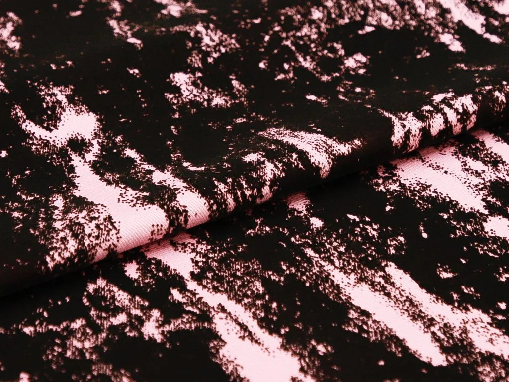 Принтованная джинса с флоком, в розово-чёрных тонах