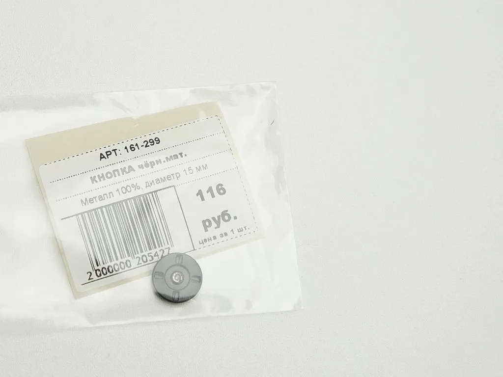 Кнопка металлическая пришивная, чёрного цвета, матовая, диаметр 15 мм