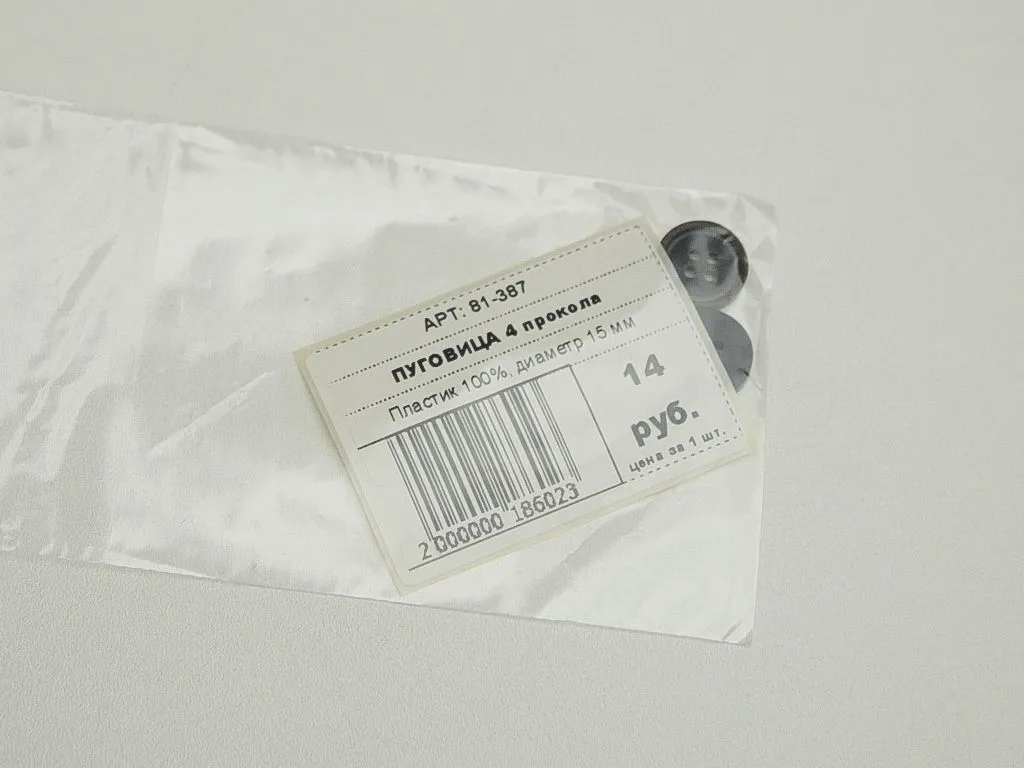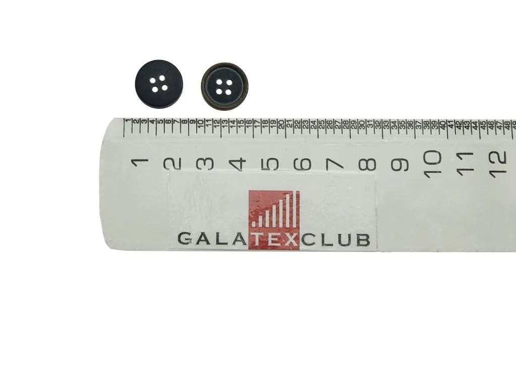Пуговица костюмная, 4 прокола, пластик, цвет синий, диаметр 15 мм