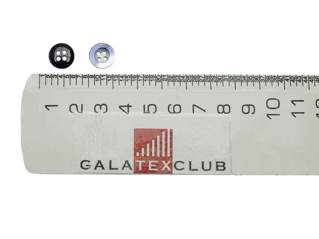 Пуговица рубашечная, 4 прокола, пластик, синий/перламутр (кант), диаметр 11 мм