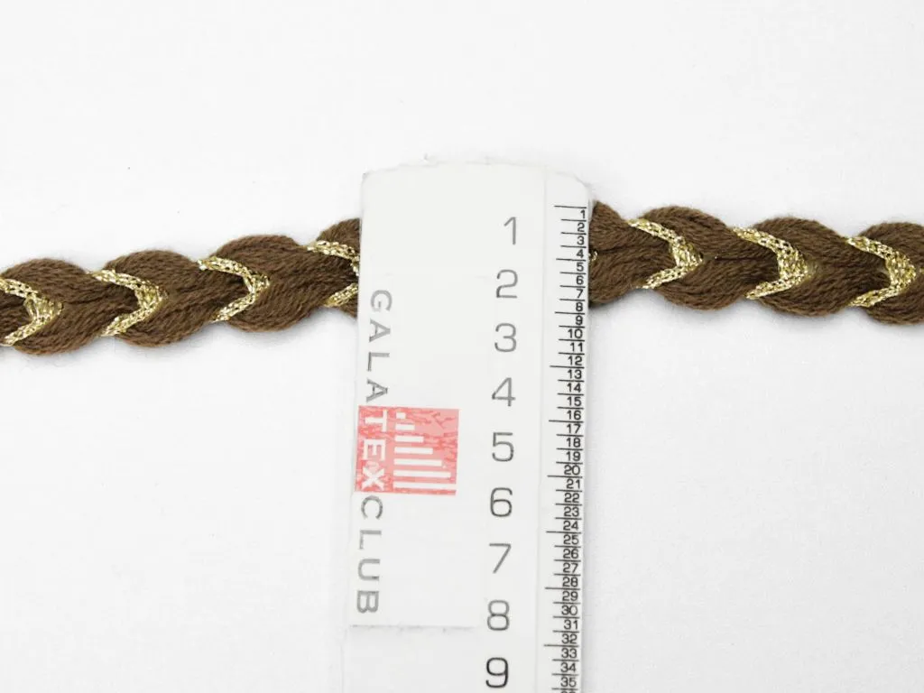 Тесьма декоративная, косичка, коричневый/золото, ширина 20 мм