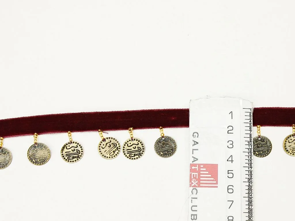 Тесьма декоративная МОНИСТО, бордовый/латунь, ширина 33 мм