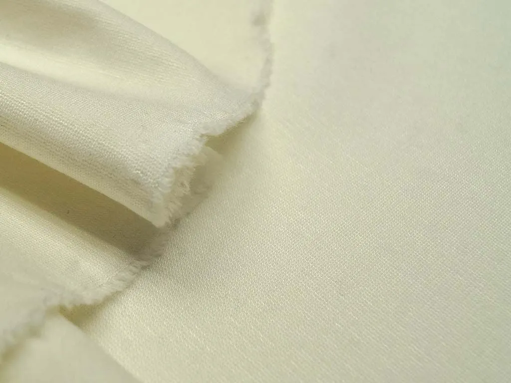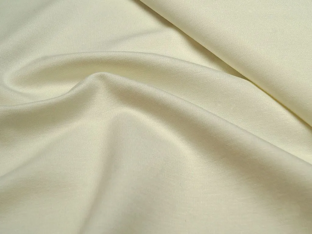 Джерси костюмно-плательное, белого цвета. Трикотажное полотно средней плотности.
