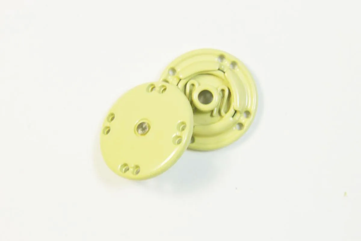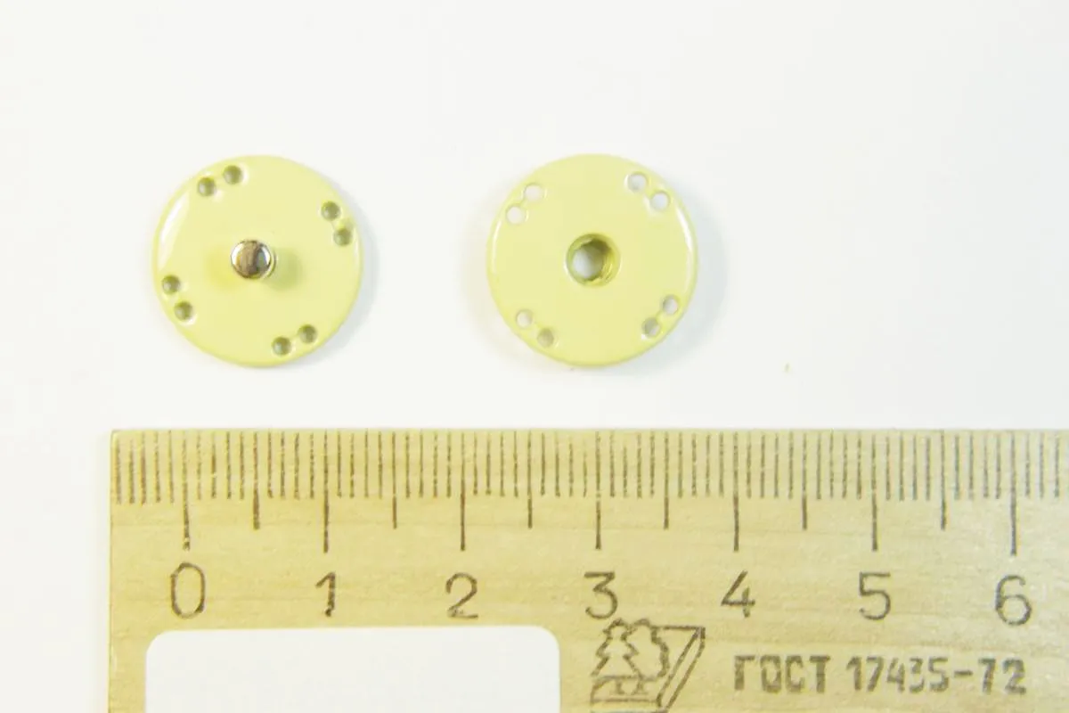 Кнопка круглая металлическая пришивная, светло-жёлтого цвета, диаметр 15 мм