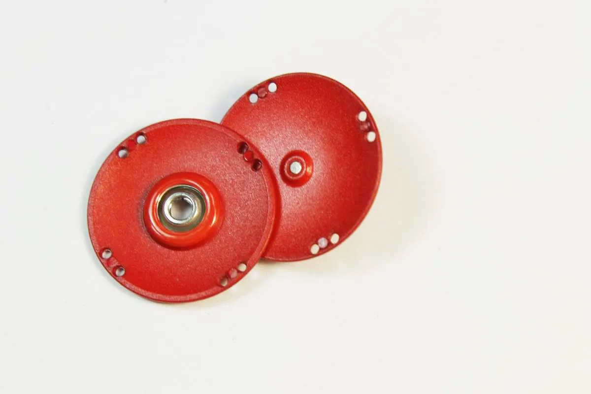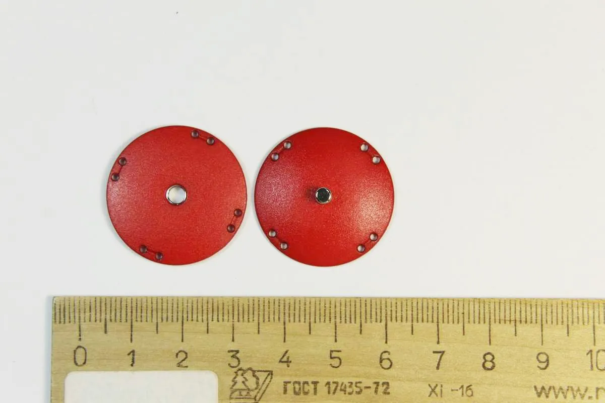 Кнопка круглая, пластмассовая, пришивная, красного цвета, диаметр 27 мм