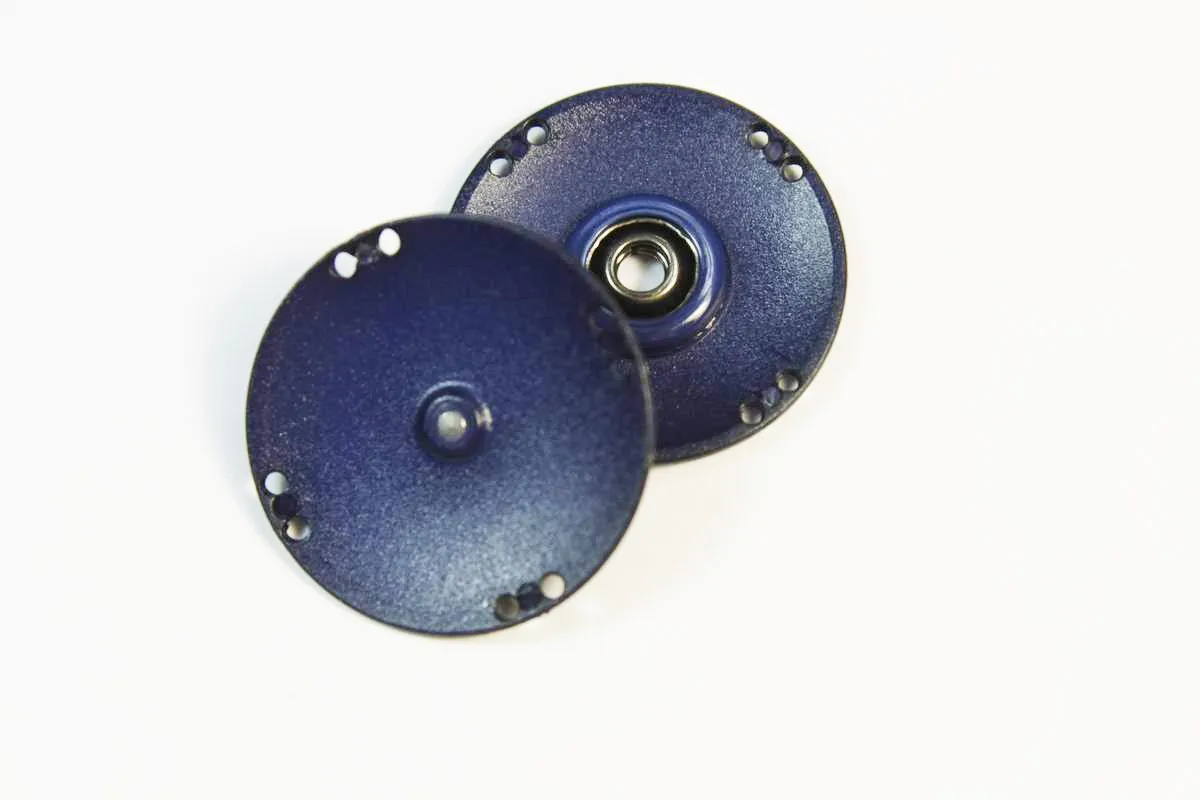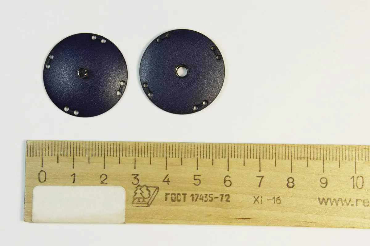 Кнопка круглая, пластмассовая, пришивная, синего цвета, диаметр 27 мм