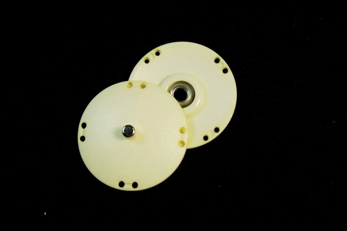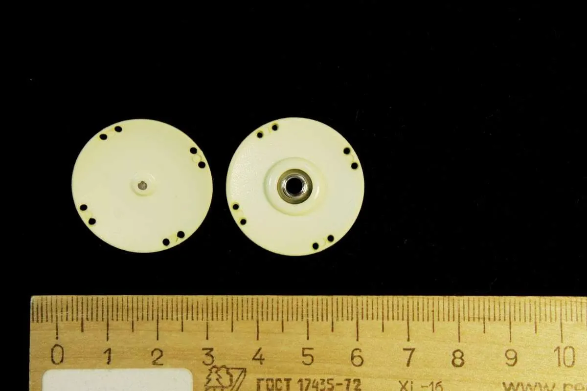 Кнопка круглая, пластмассовая, пришивная, светло-жёлтого цвета, диаметр 27 мм