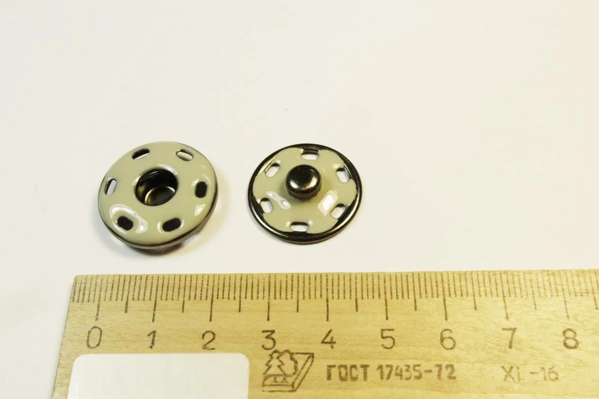Кнопка металлическая пришивная, чёрный никель / серая эмаль, диаметр 23 мм