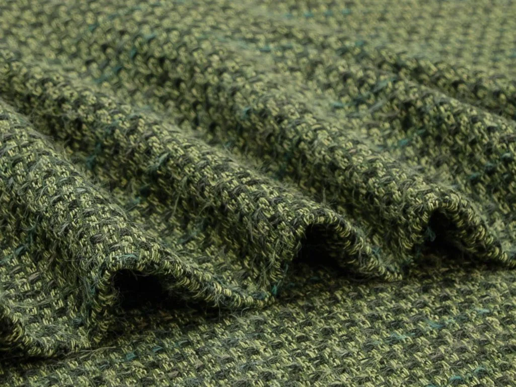 Двухсторонняя буклированная костюмная ткань, меланж в зеленых тонах