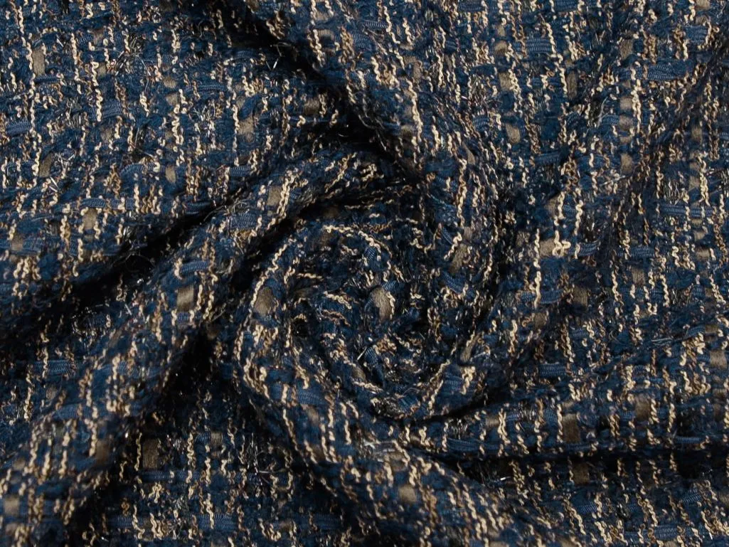 Двухсторонняя буклированная костюмная ткань с люрексом, меланж цвет сине-коричневый