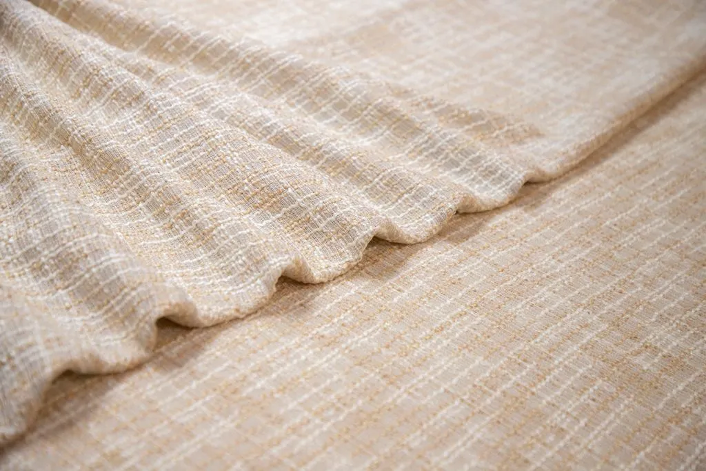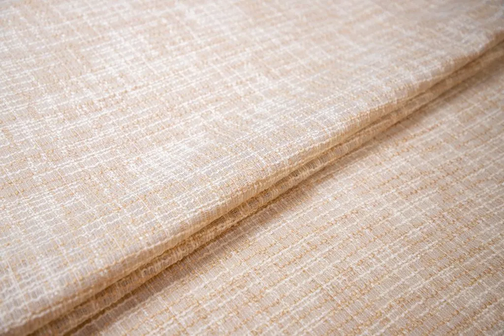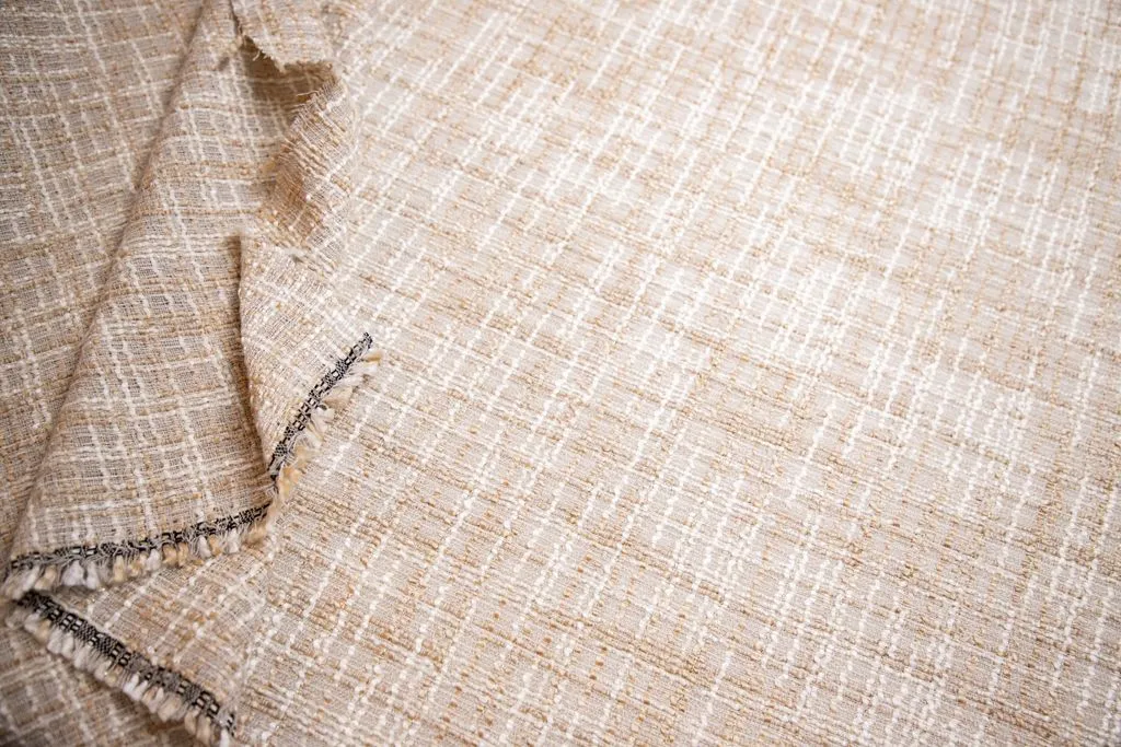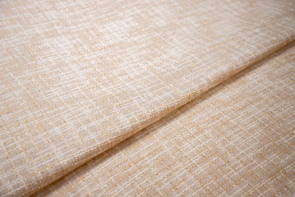 Двухсторонняя костюмная ткань буклированная с золотистым люрексом, цвет персиково-белый