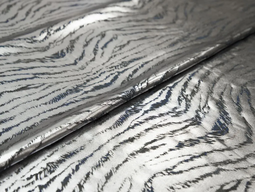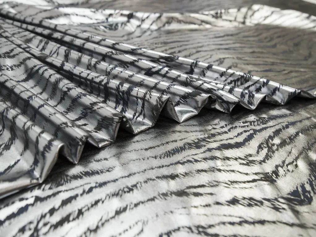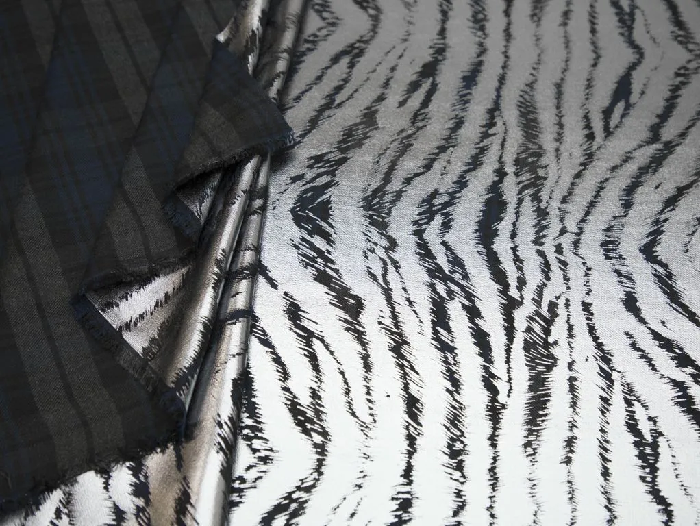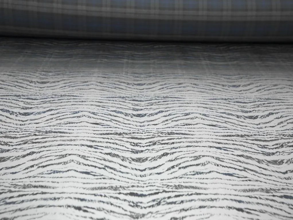 Двухсторонняя костюмная ткань, синяя клетка с серебристым напылением