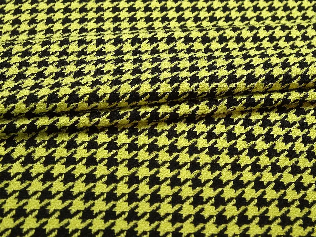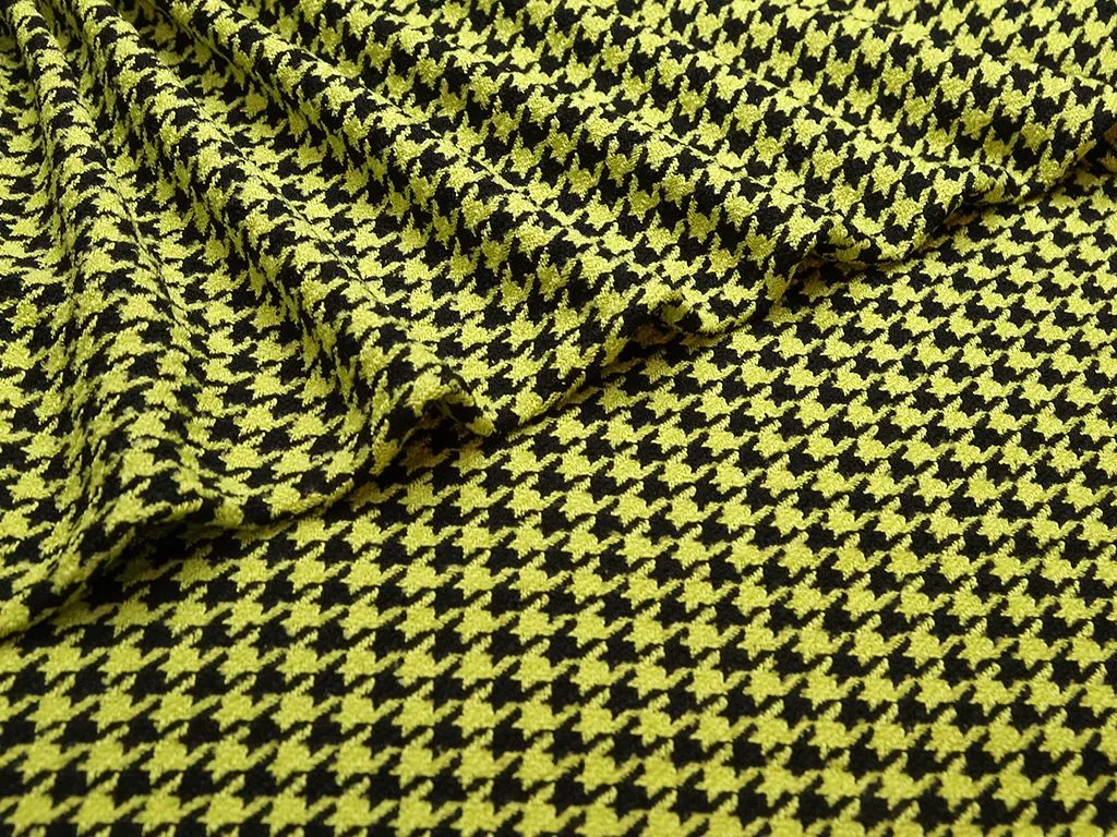 Двухсторонняя костюмная ткань в гусиную лапку, цвет черно-салатовый