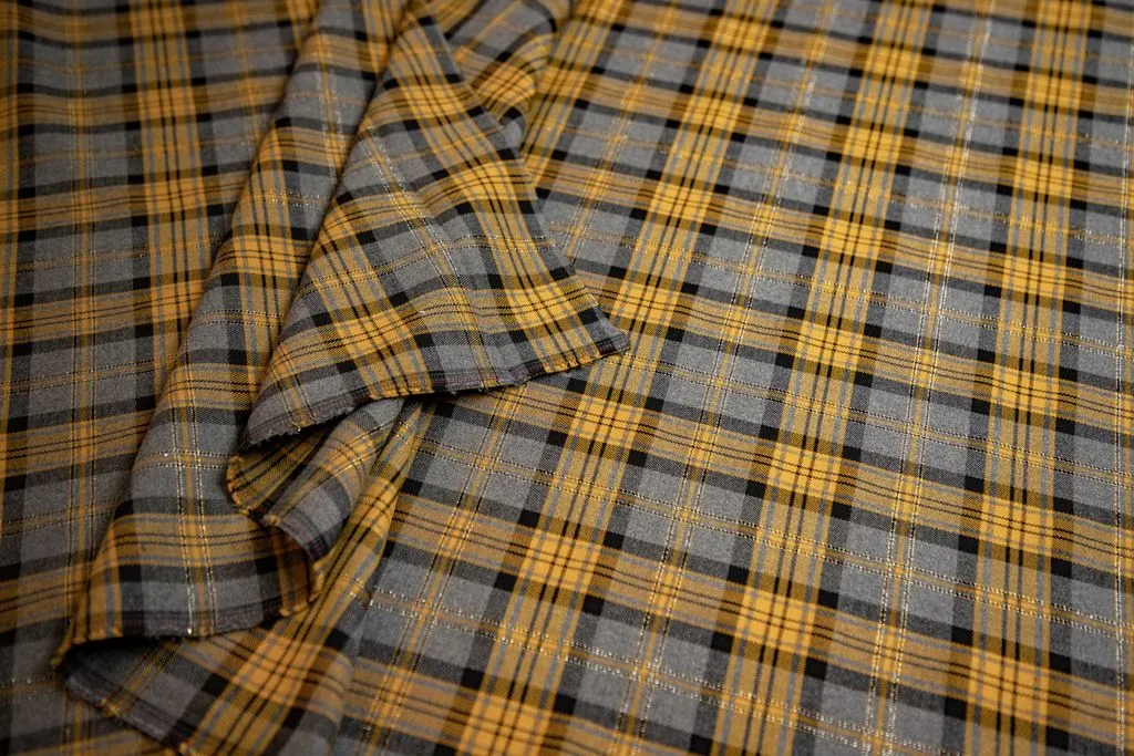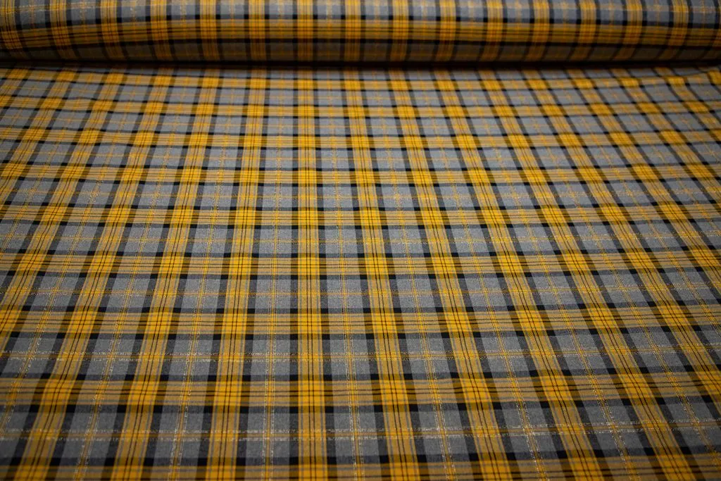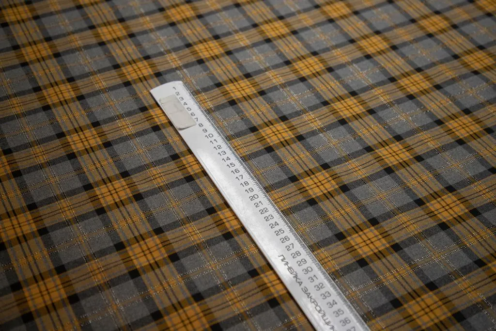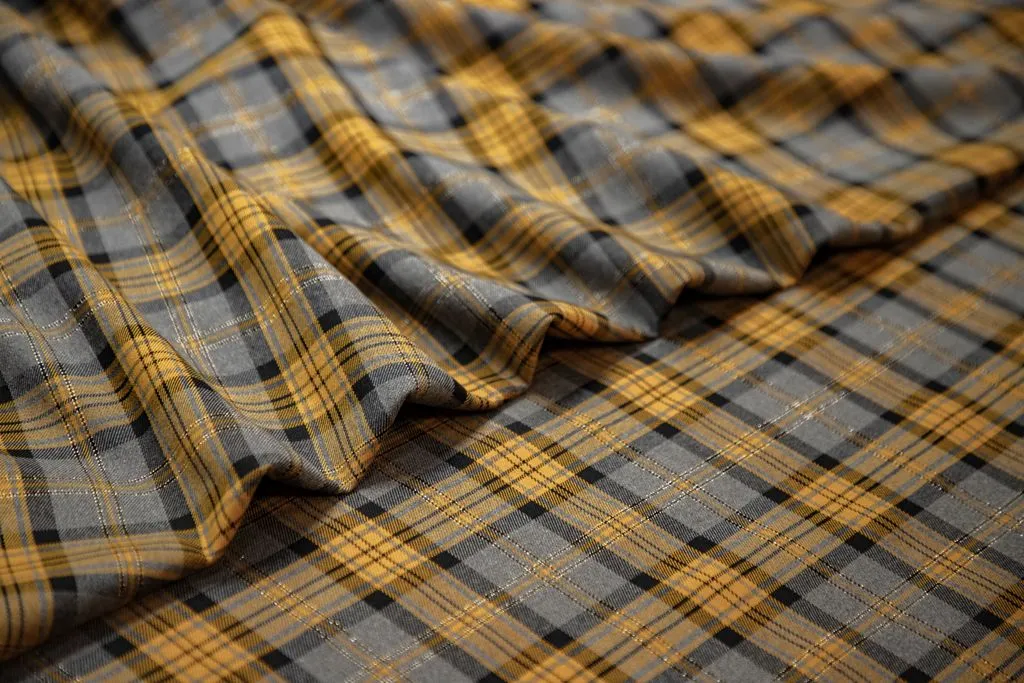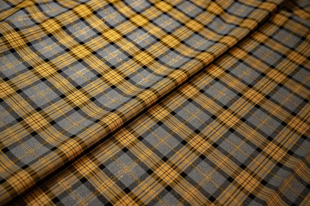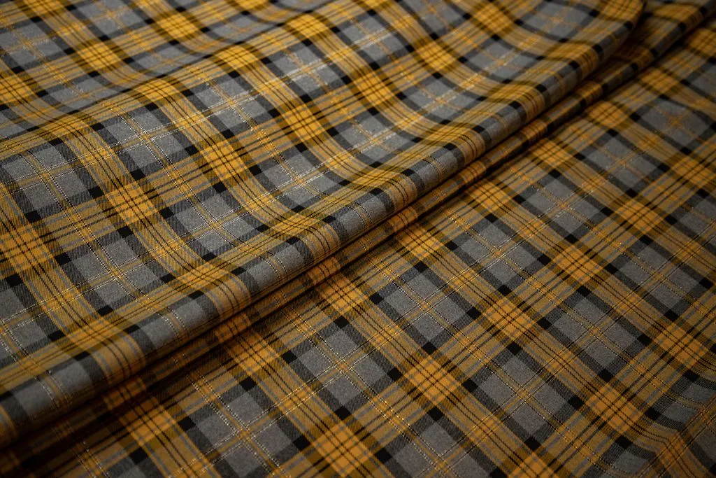 Двухсторонняя костюмная ткань в клетку с люрексом, цвет рыже-серый