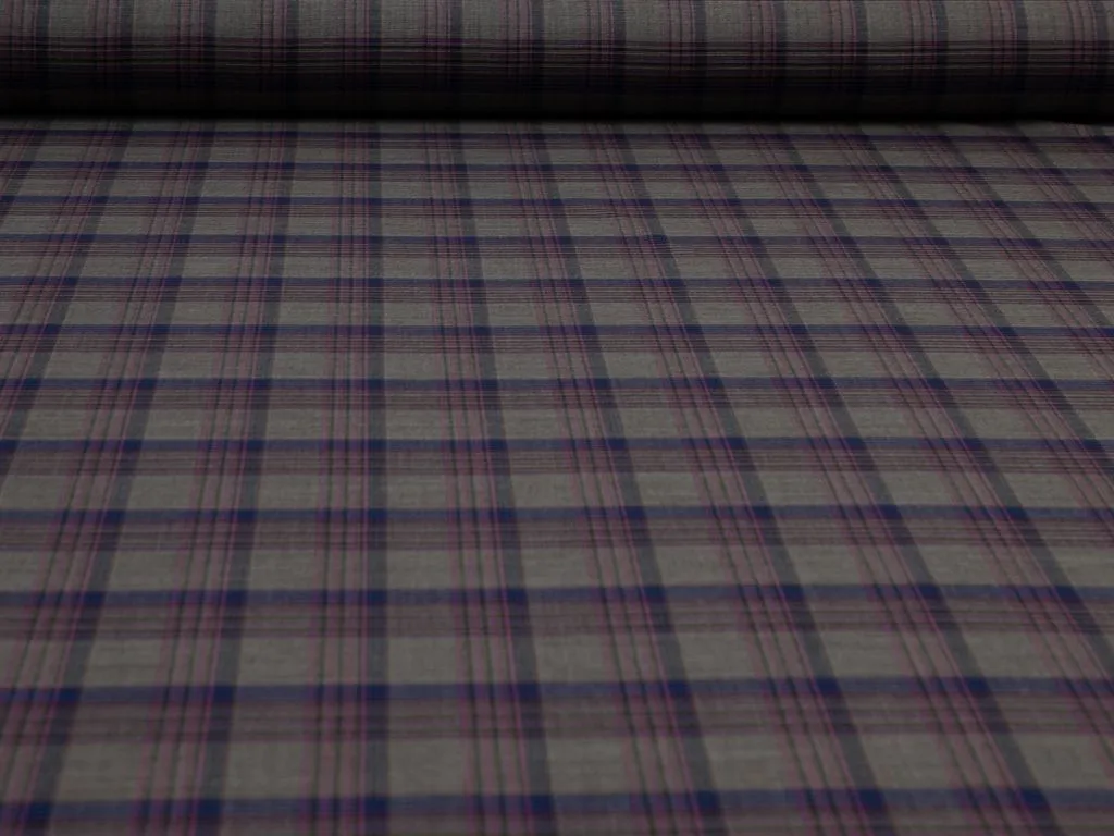 Двухсторонняя костюмная ткань в клетку, цвет розово-коричневый