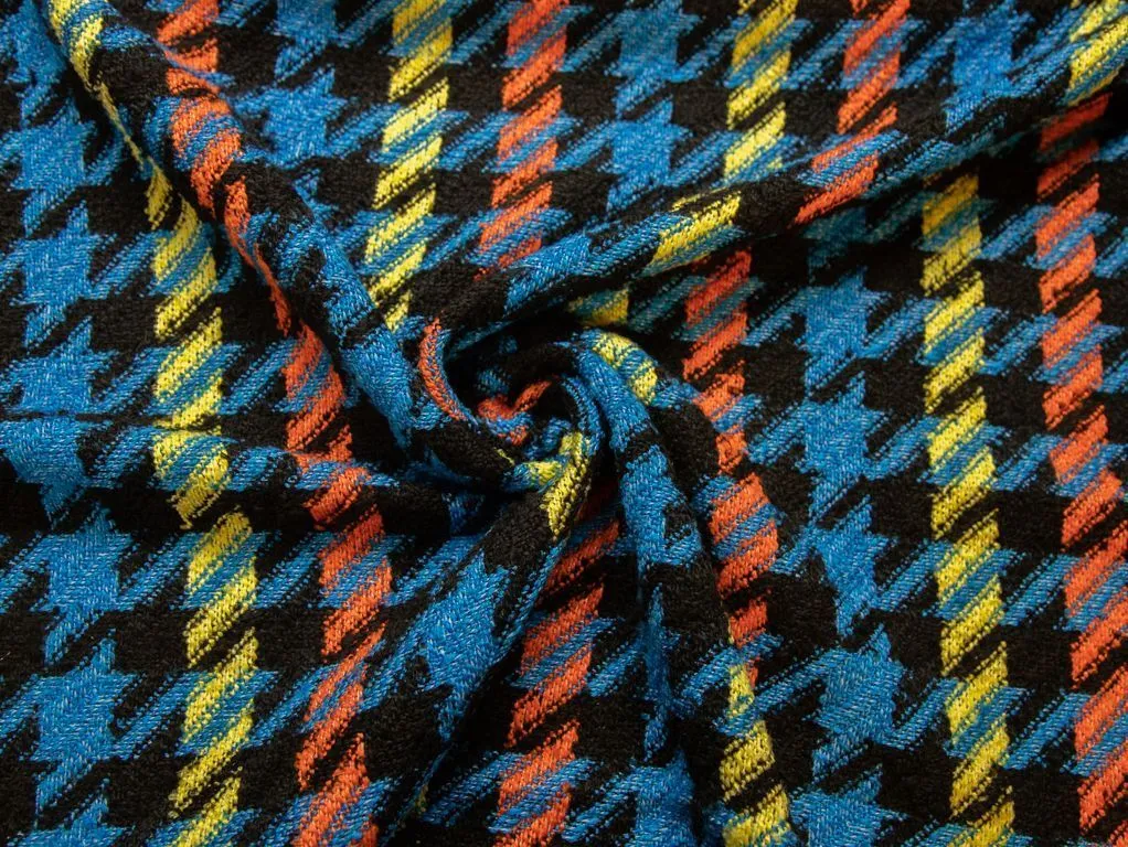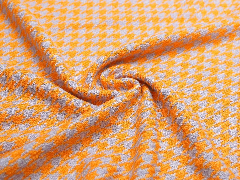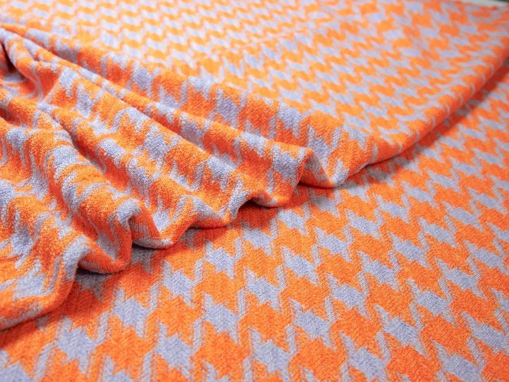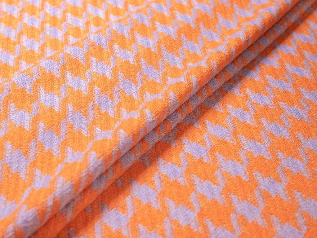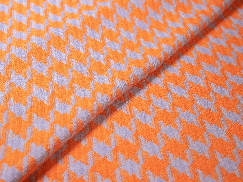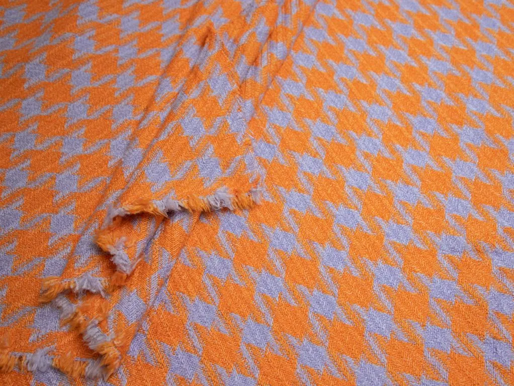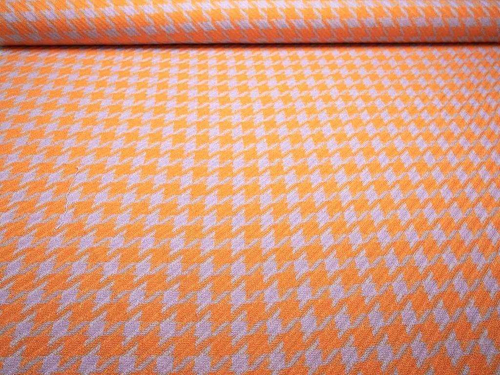 Двухсторонняя костюмная ткань в крупную гусиную лапку, цвет оранжево-лиловый