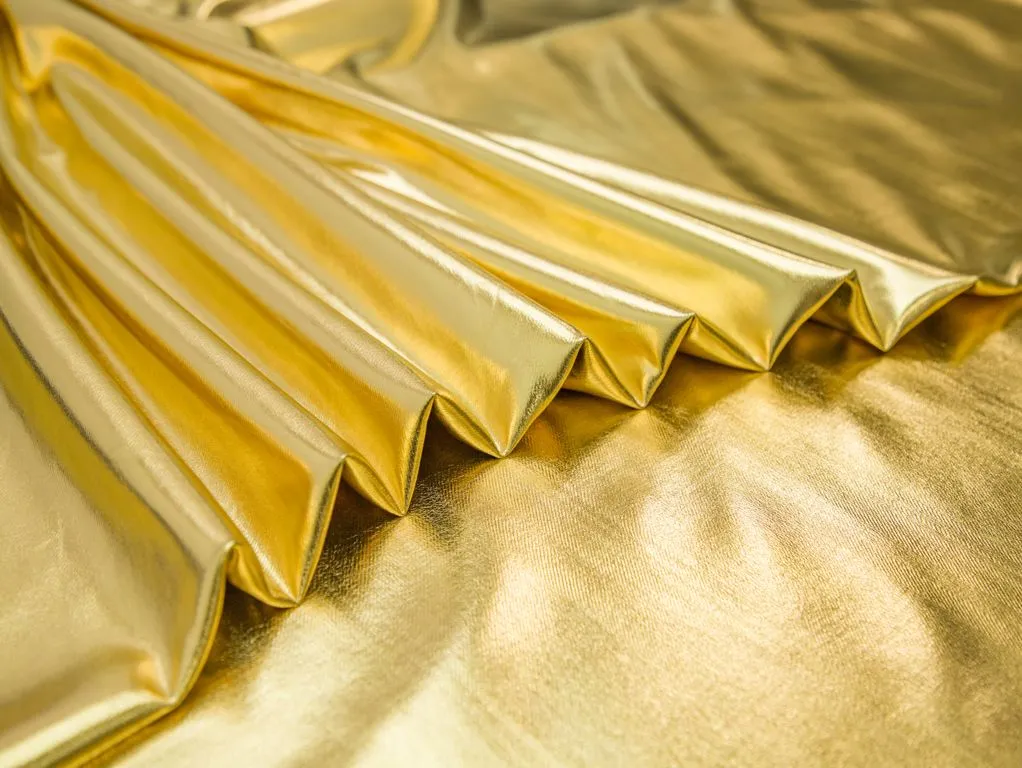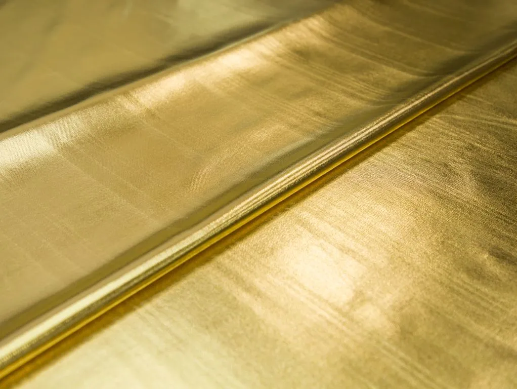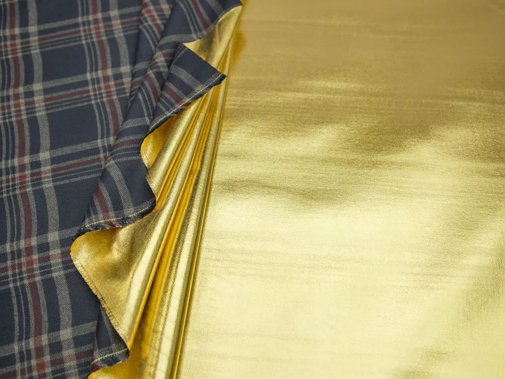 Двухсторонняя костюмная ткань, золото и синяя клетка