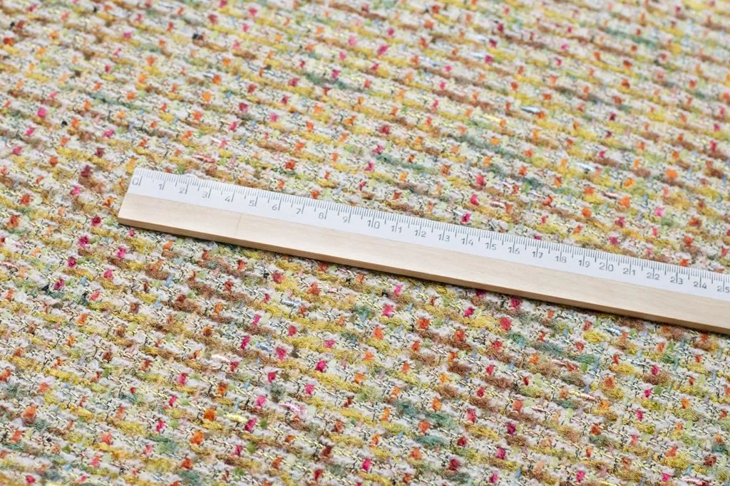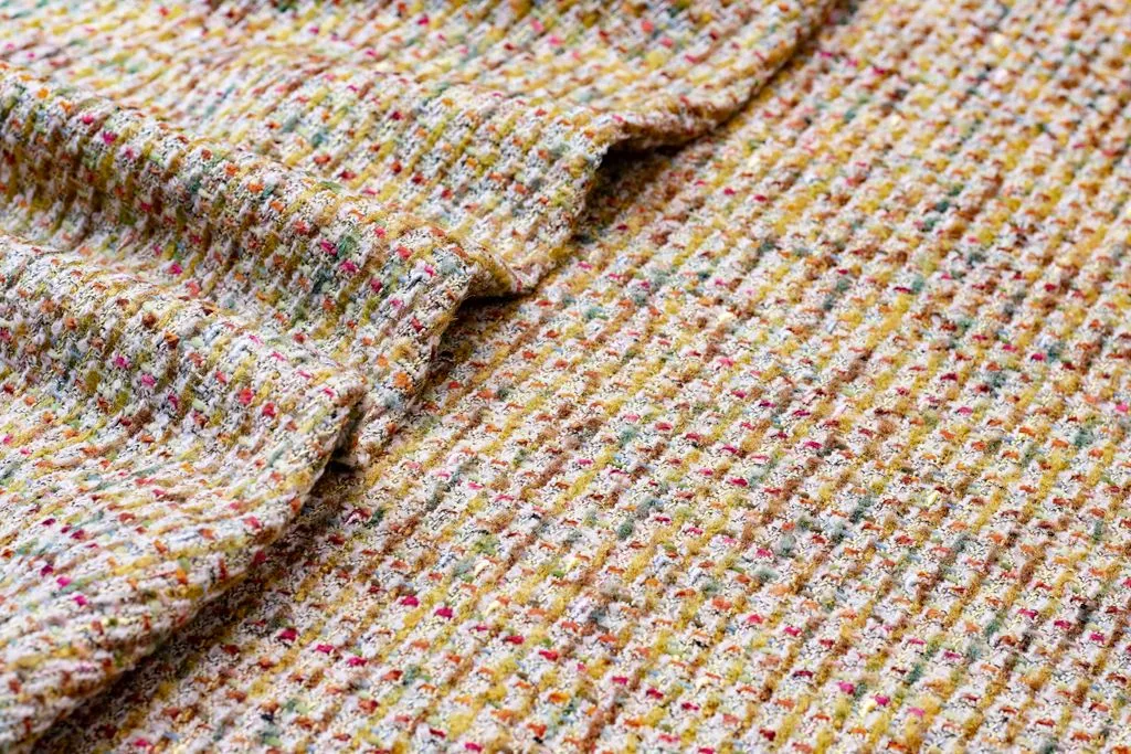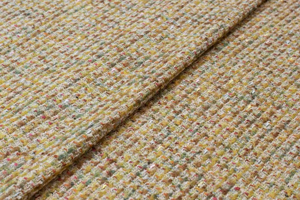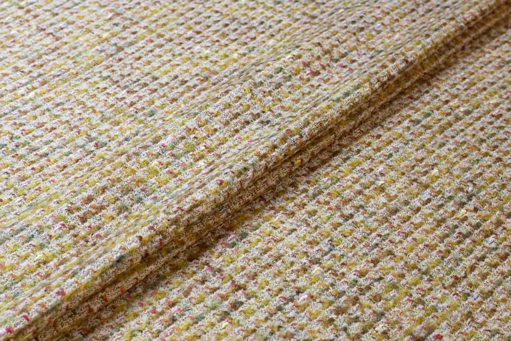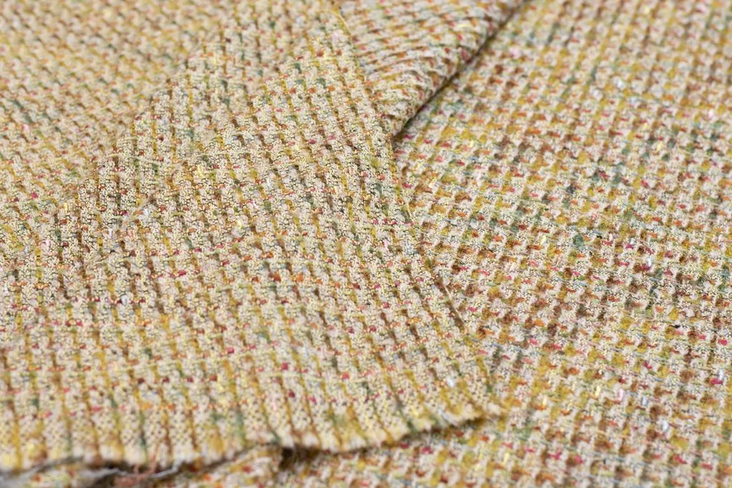 Двухсторонняя твидовая костюмная ткань, цвет золотисто-оливковый мультиколор