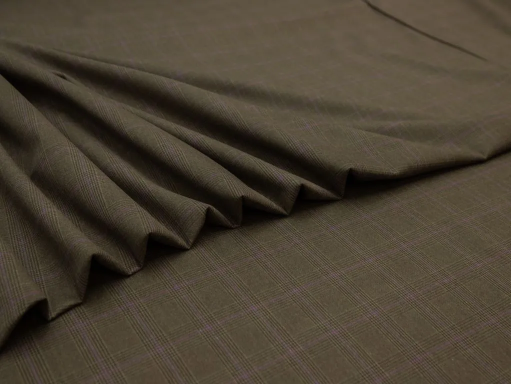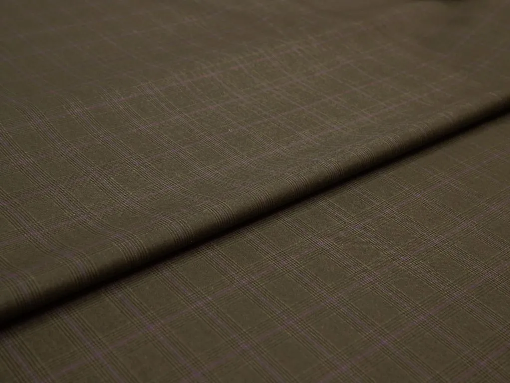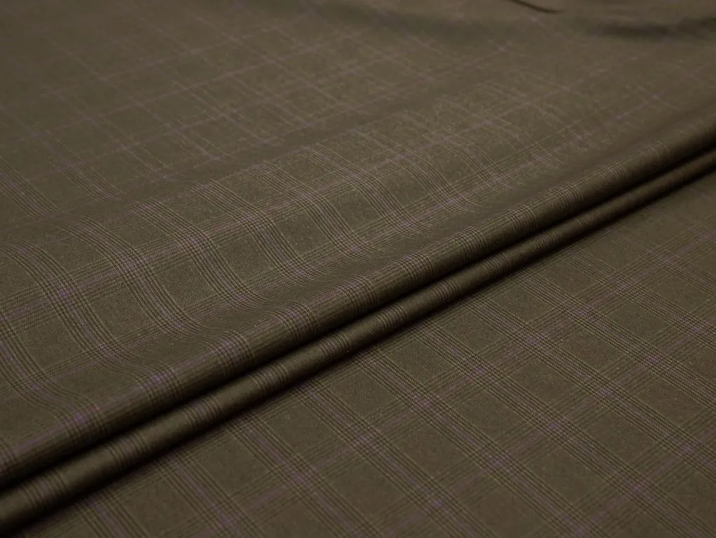 Хлопковая костюмная фланель в клетку, цвет коричнево-фиолетовый