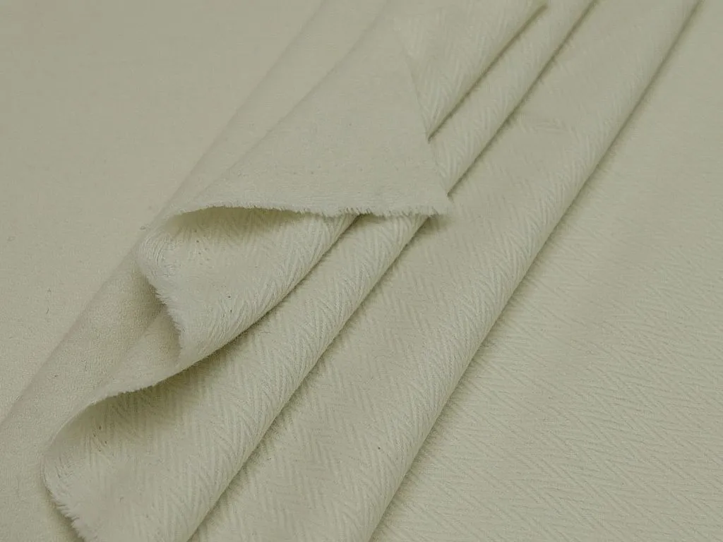 Костюмная ткань с принтом "Ёлочка", в молочных тонах