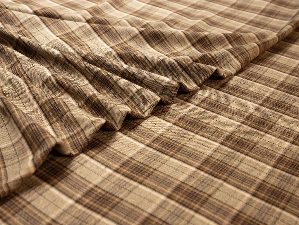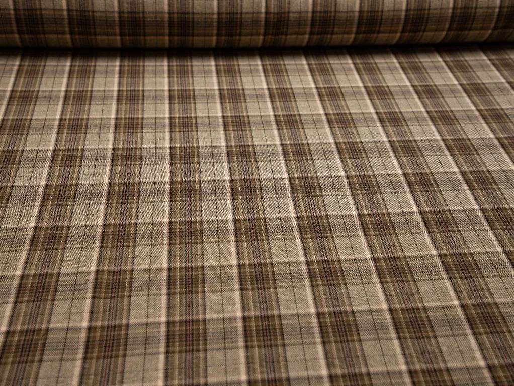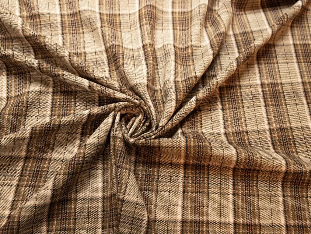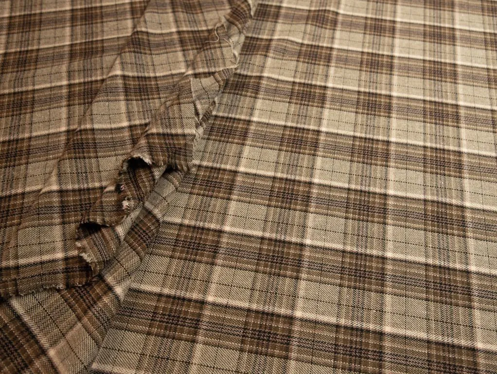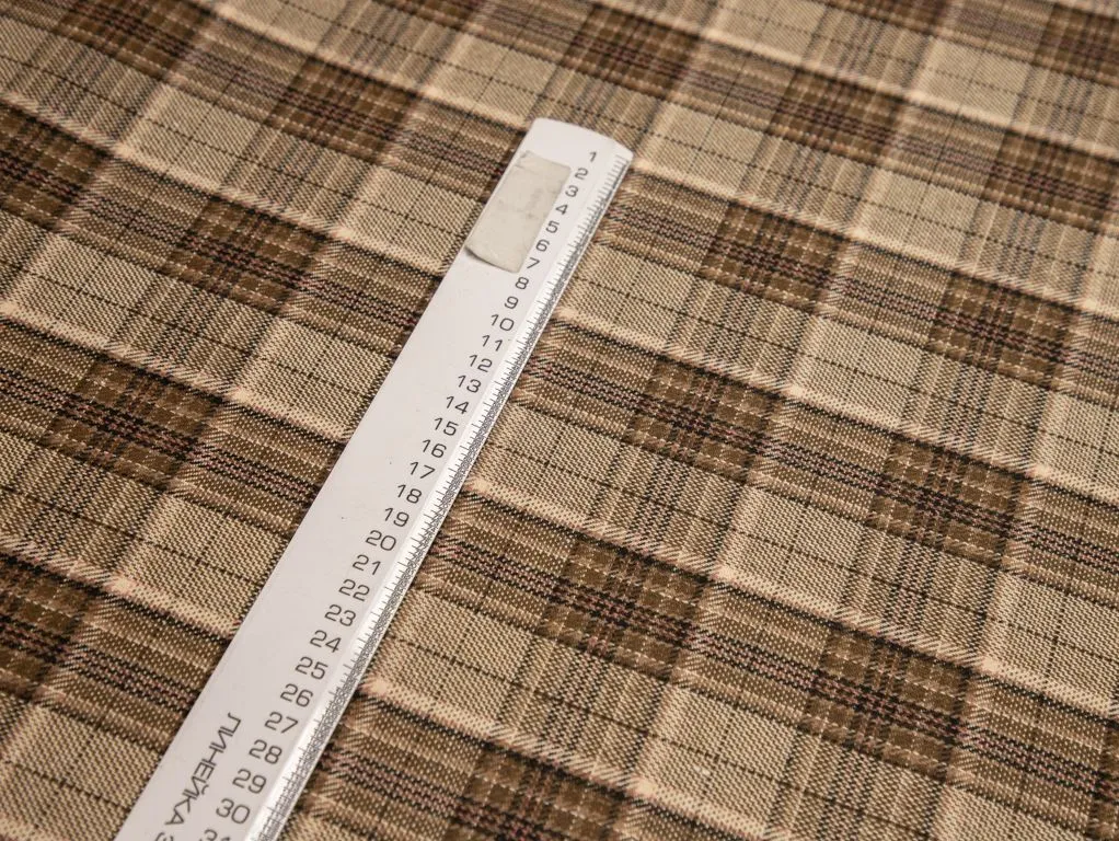 Костюмная ткань в клетку коричнево-бежевого цвета
