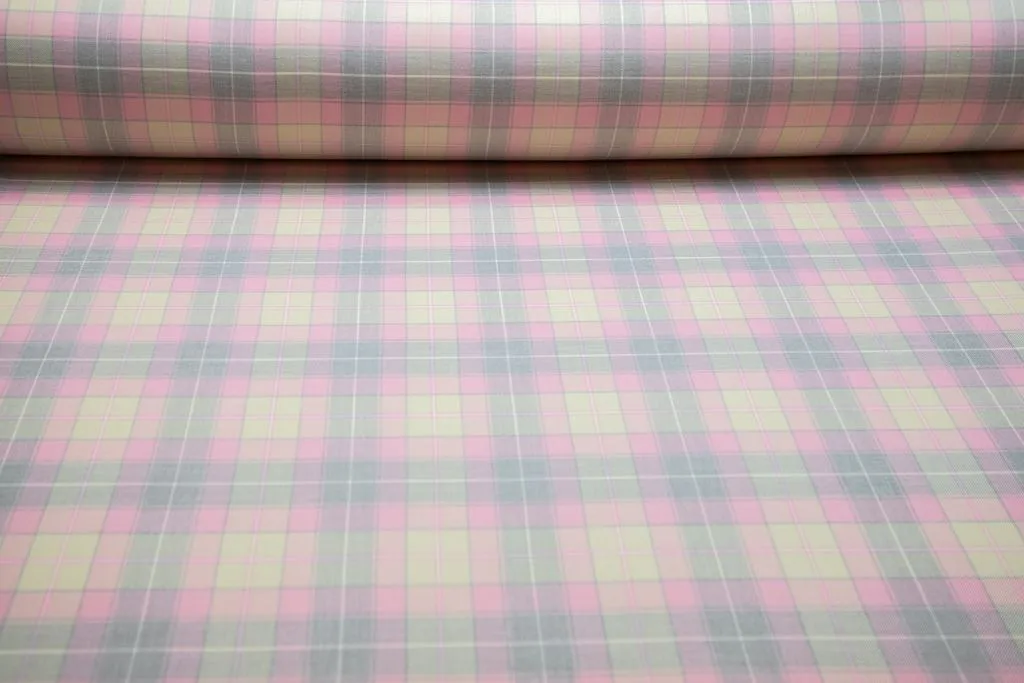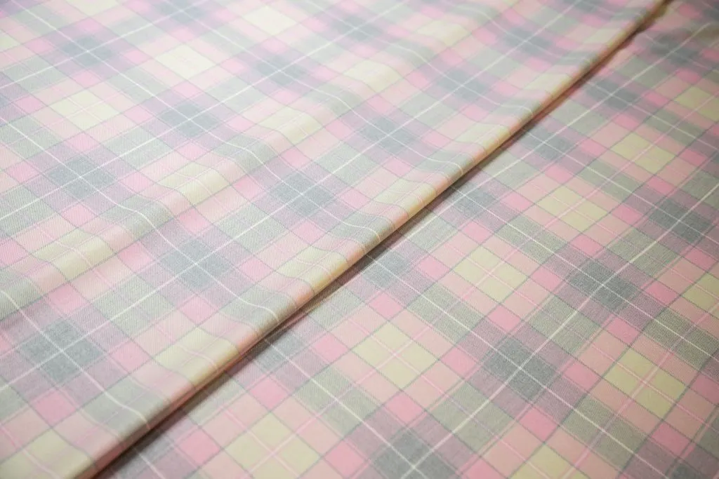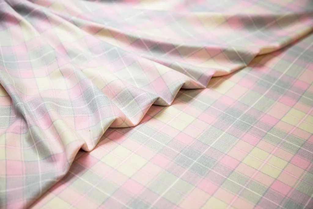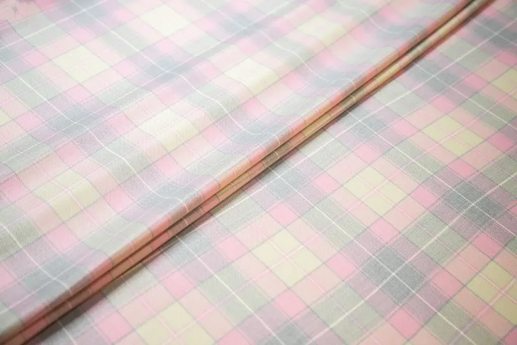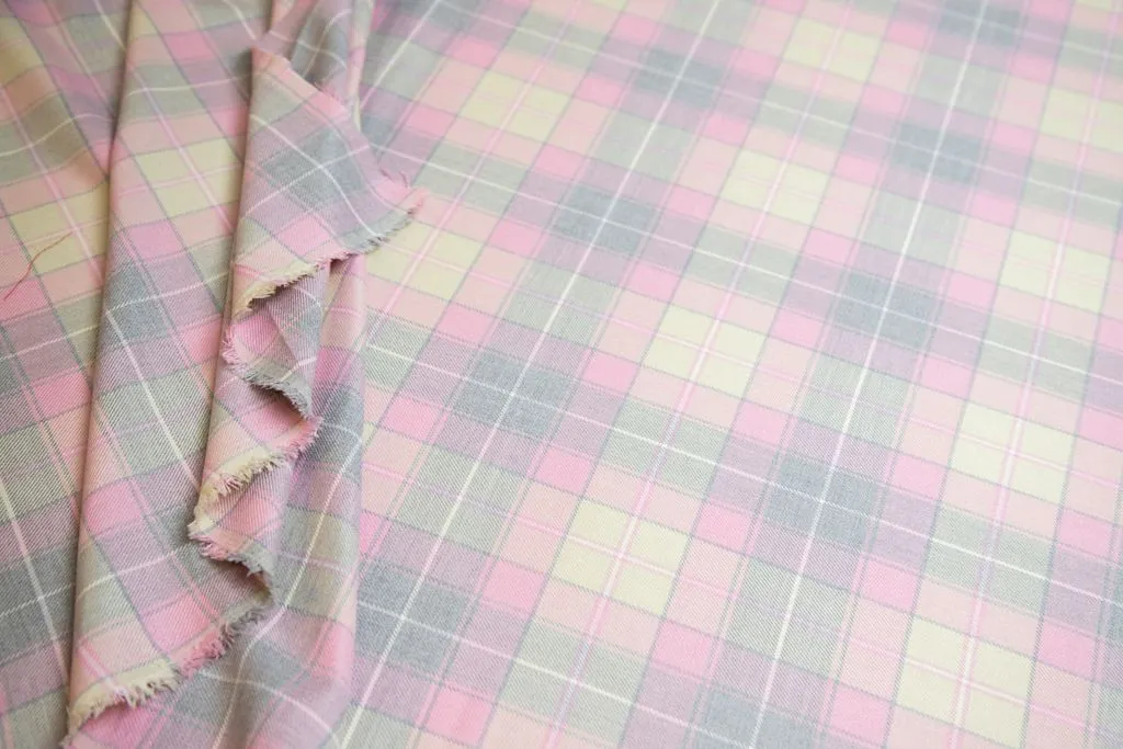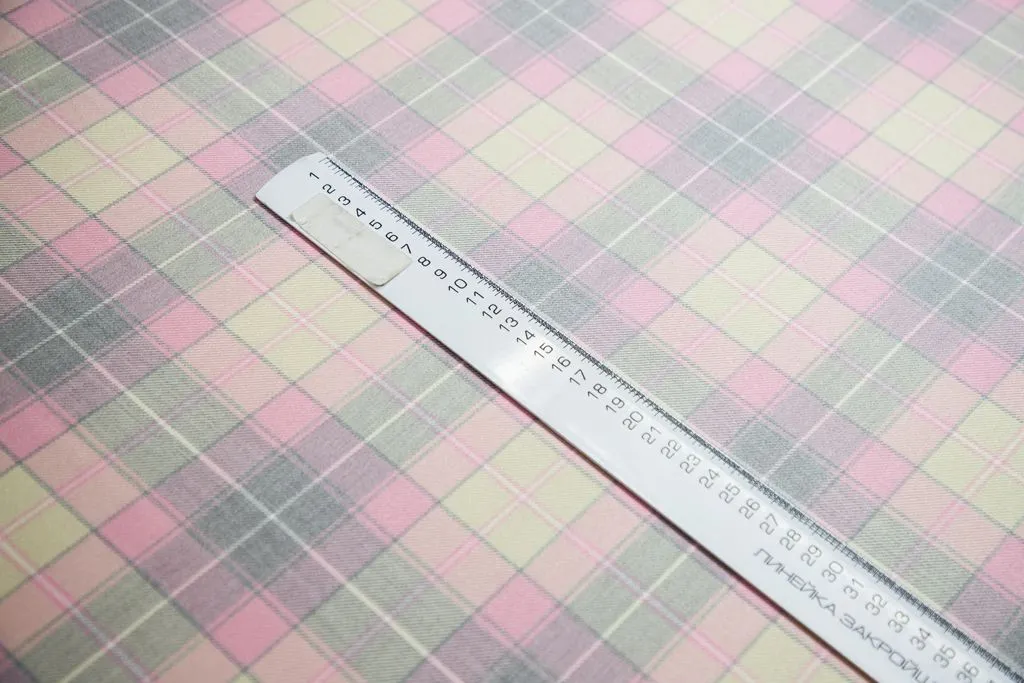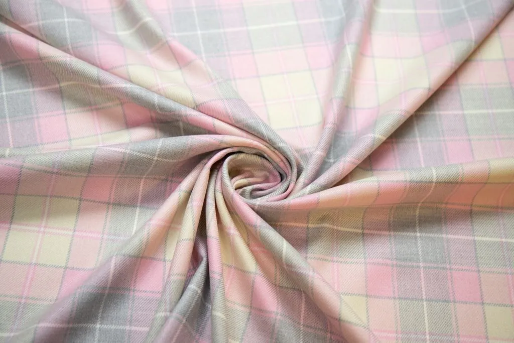 Костюмная ткань в клетку, цвет серо-розовый
