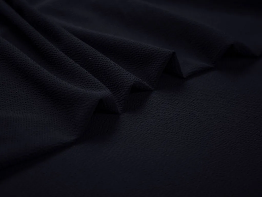 Костюмно-плательная ткань с эффектом жатки, цвет темно-синий