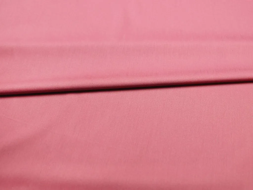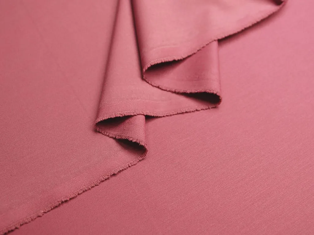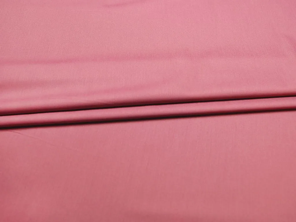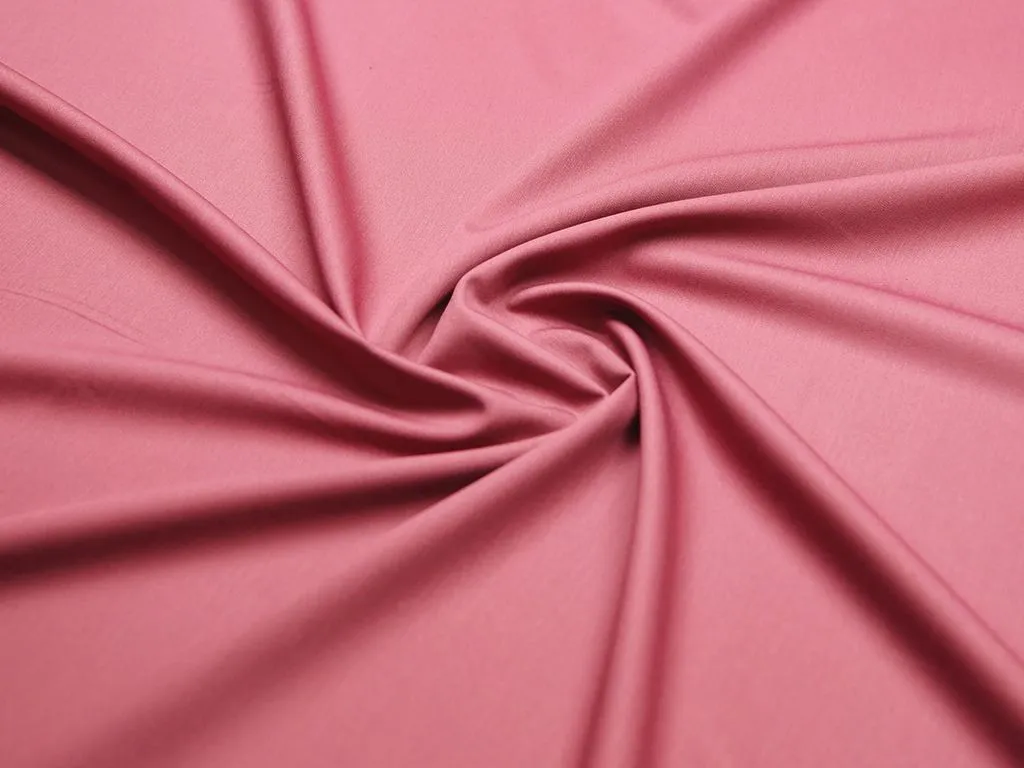 Легкая костюмно-плательная ткань из поливискозы с добавлением эластана, цвет темно-розовый. Материал тактильно очень приятный и мягкий, тонкий по плотности, с низкой сминаемостью и хорошо драпируется. Подойдет для пошива офисной и повседневной одежды, особенно в летний сезон: костюмы, платья, брюки, шорты, юбки и жакеты.