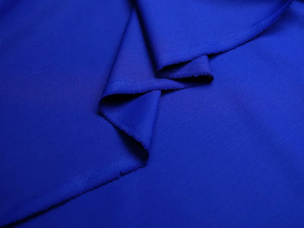 Легкая костюмно-плательная ткань из поливискозы с добавлением эластана, цвет васильковый. Материал тактильно очень приятный и мягкий, тонкий по плотности, с низкой сминаемостью и хорошо драпируется. Подойдет для пошива офисной и повседневной одежды, особенно в летний сезон: костюмы, платья, брюки, шорты, юбки и жакеты.