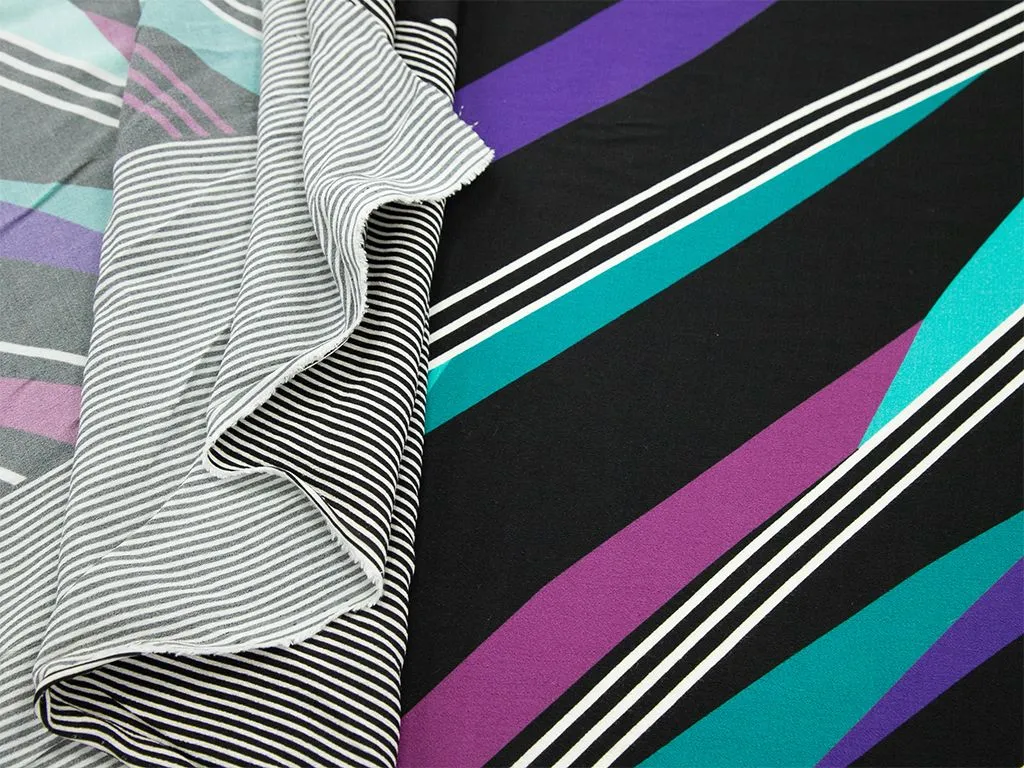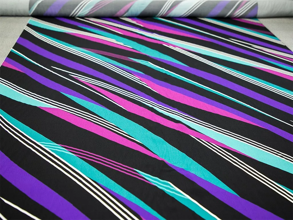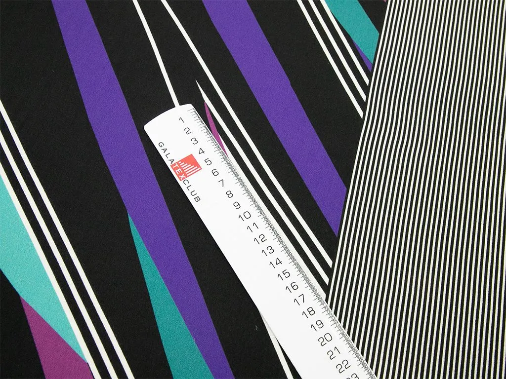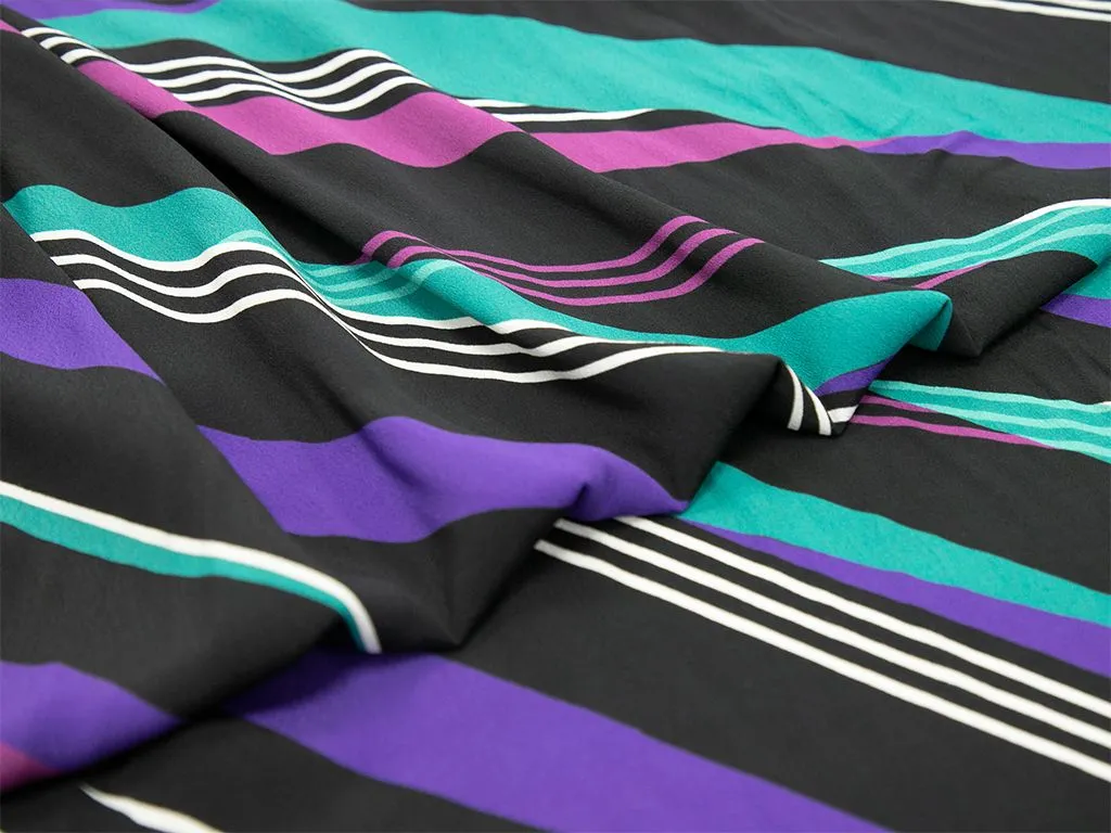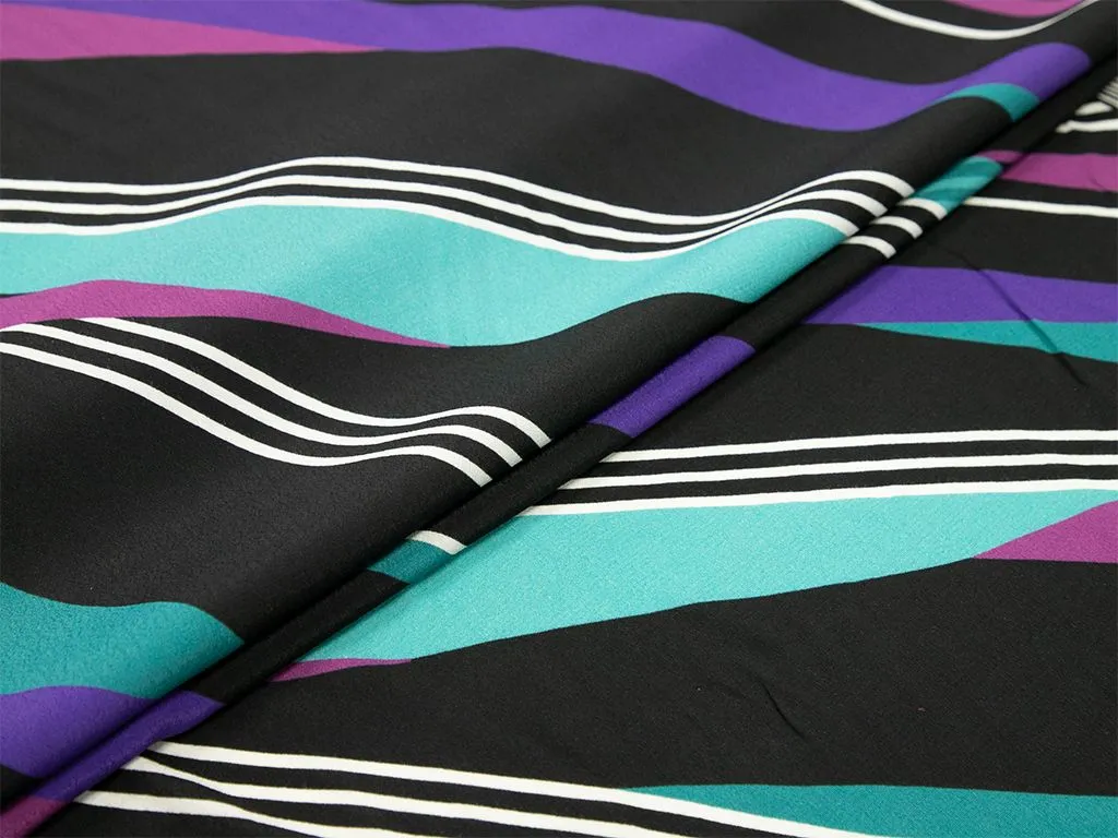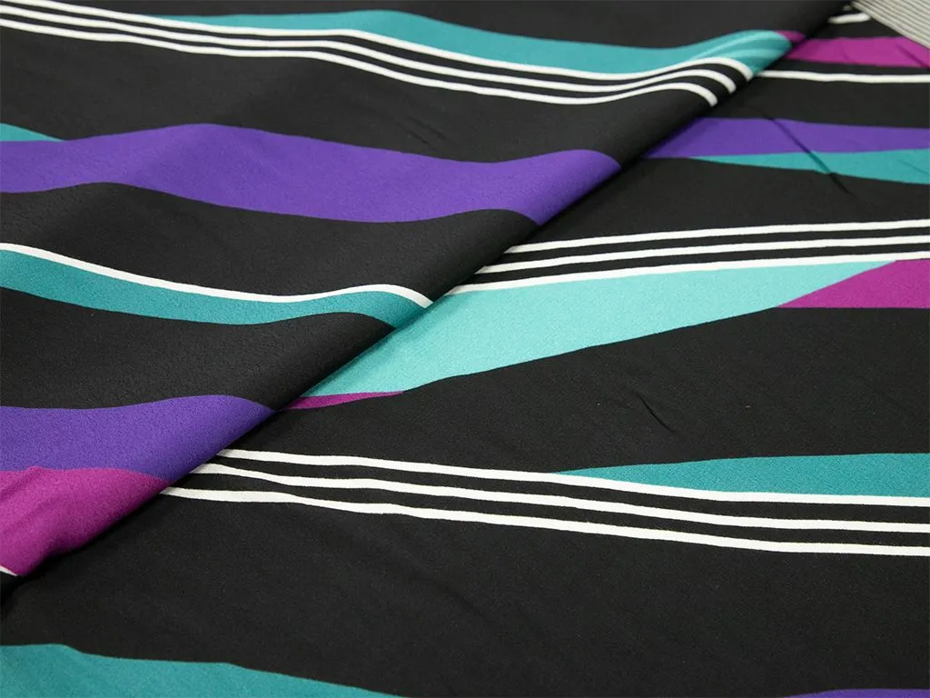 Креп блузочно-плательный с геометрическим рисунком и полосатой каймой, мультиколор