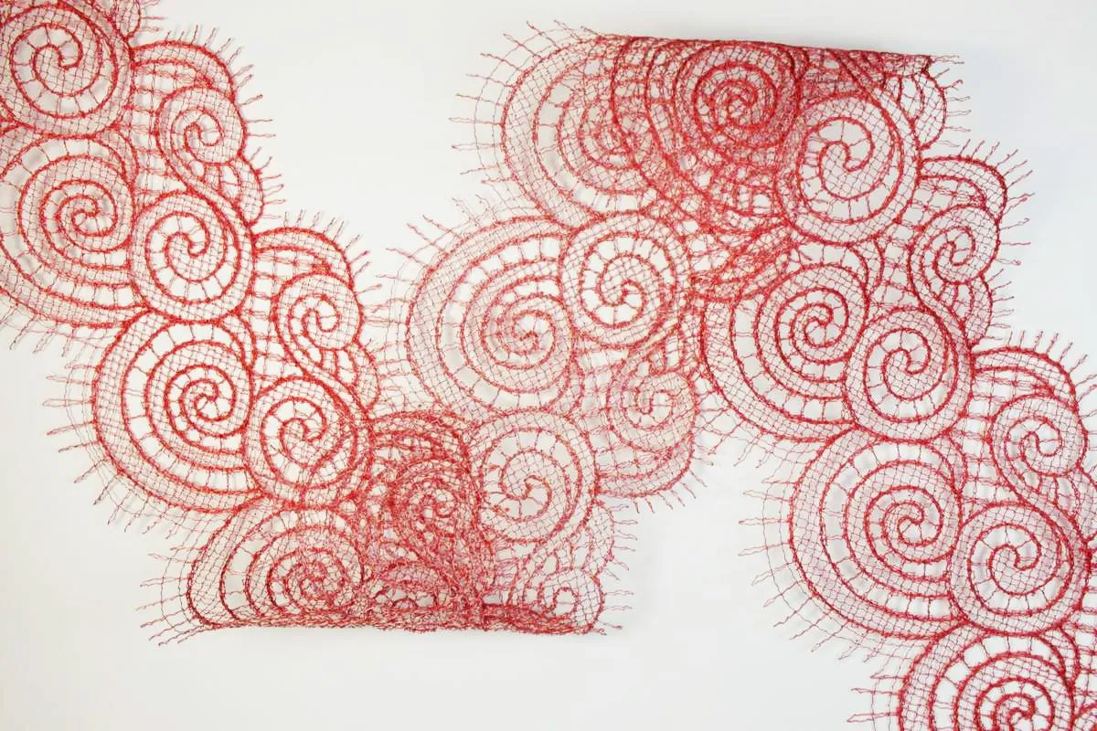 Кружево красное, ширина 95 мм