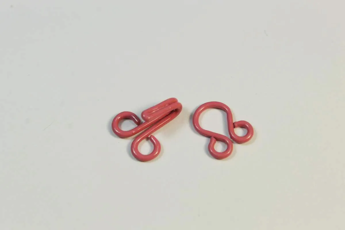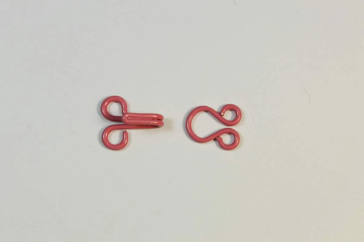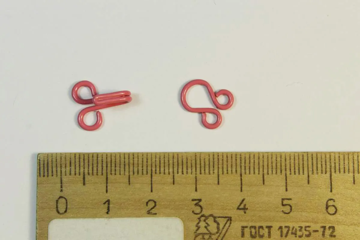 Крючок металлический,эмалированный, розового цвета, длина 13 мм
