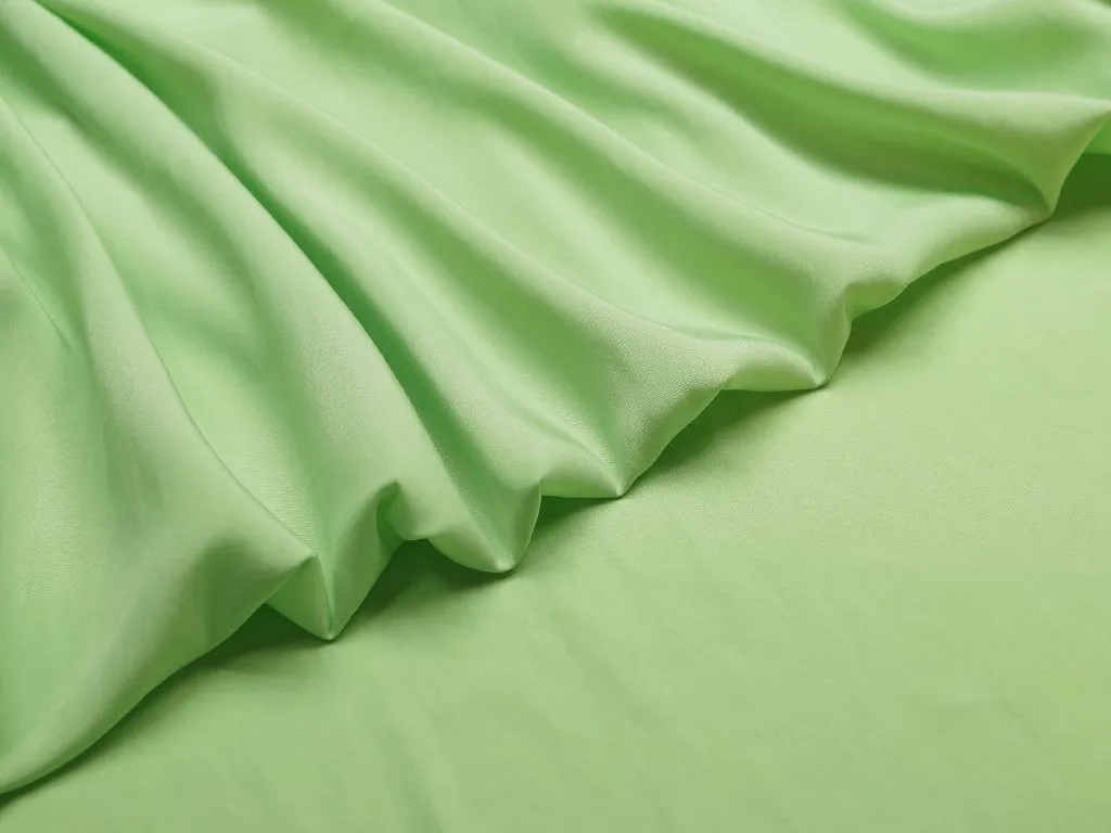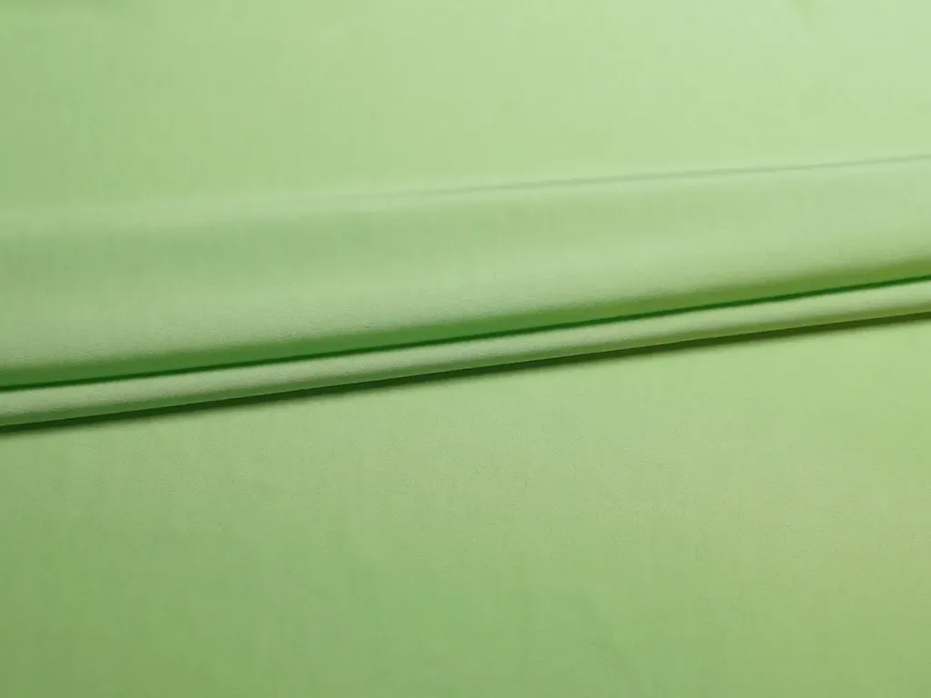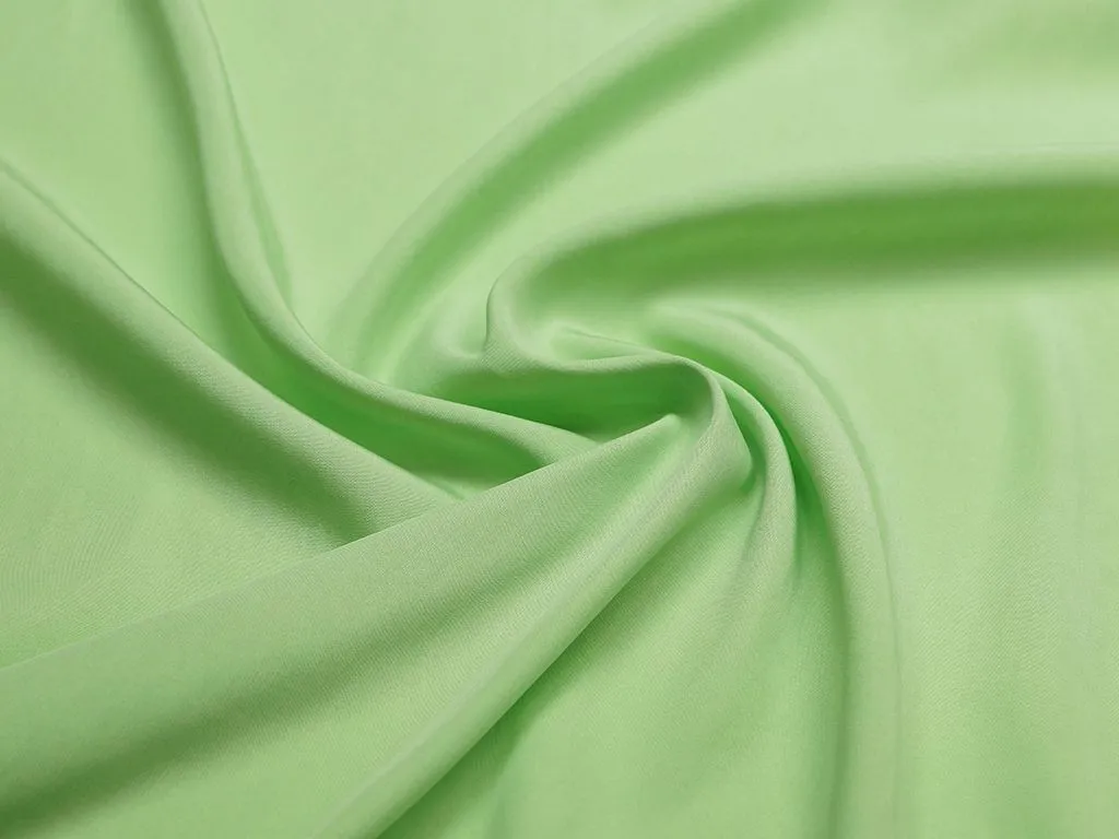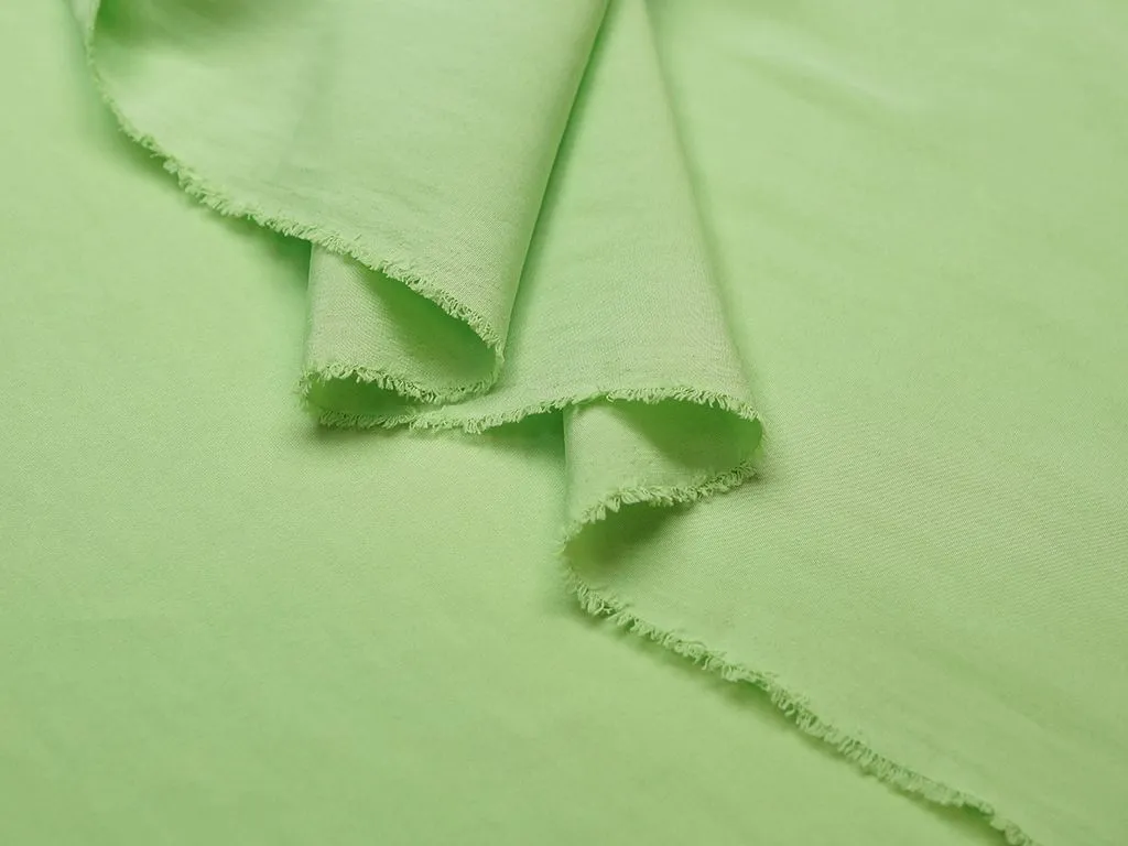 Прекрасная блузочно-плательная купра нежно-салатового цвета. На ощупь ткань мягкая, чувствуется легкая текстура, слегка просвечивает, очень красива в драпировке. Подходит для пошива платья, юбки или блузы.
