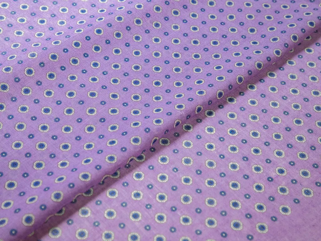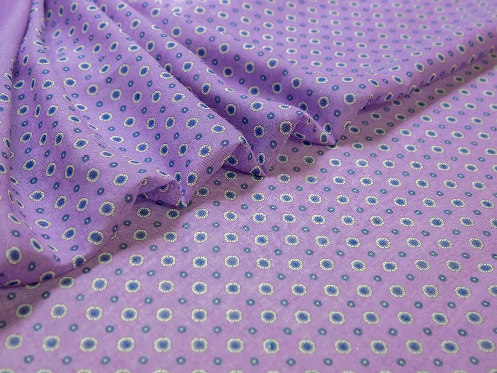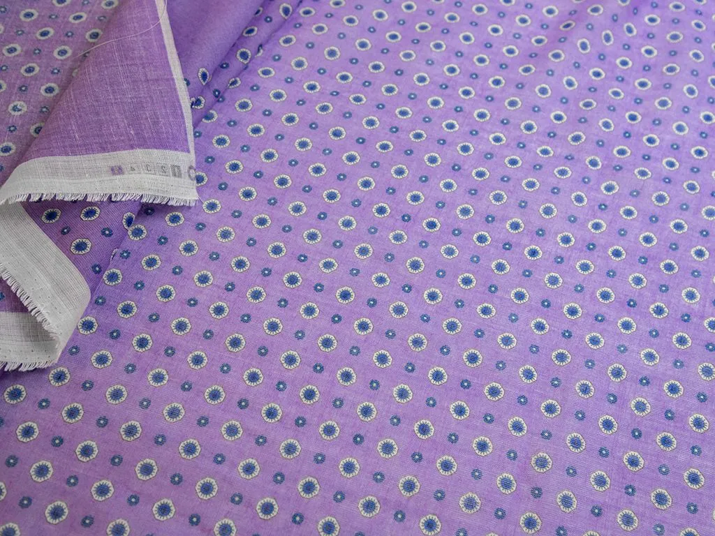 Рубашечно-плательный лен с мелкими цветочками, цвет сине-сиреневый, купон 175 см